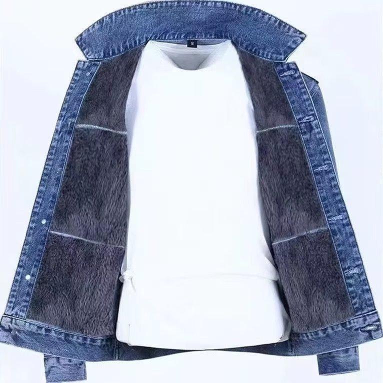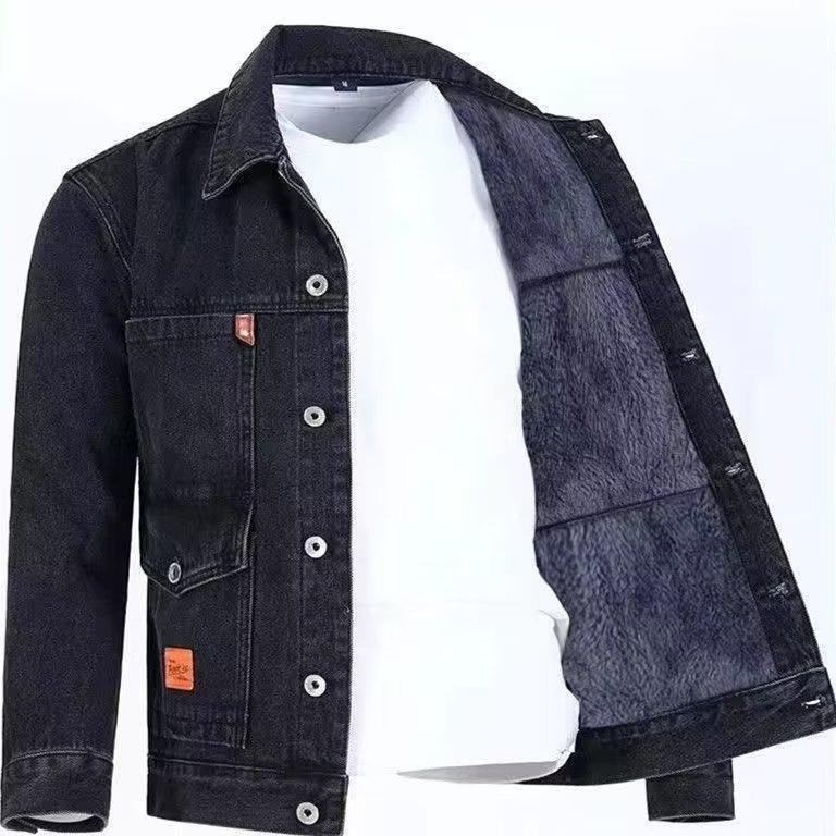 Jaqueta jeans masculina com forro de lã, nova primavera e outono de 2023, jaqueta solta para trabalho, lapela, jeans, tendência masculina