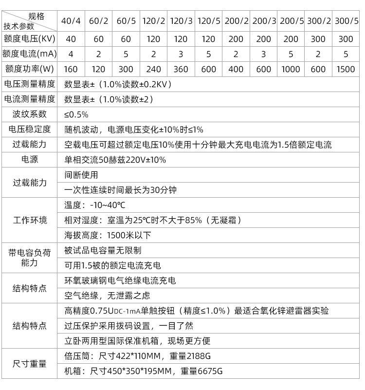 O gerador de alta tensão DC da série ZGF adota circuito de duplicação de tensão de média frequência, assume a liderança na aplicação da mais recente tecnologia de modulação de largura de pulso de média frequência PWM, ajuste de circuito fechado e adota feedback de grande tensão para melhorar significativamente a estabilidade de tensão. Utiliza dispositivos IGBT de alta potência com excelente desempenho e sua tecnologia de acionamento, e adota medidas especiais de blindagem, isolamento e aterramento de acordo com a teoria da compatibilidade eletromagnética. Isso torna o gerador de alta tensão CC de alta qualidade, portátil e capaz de suportar descarga de tensão nominal sem danos.
