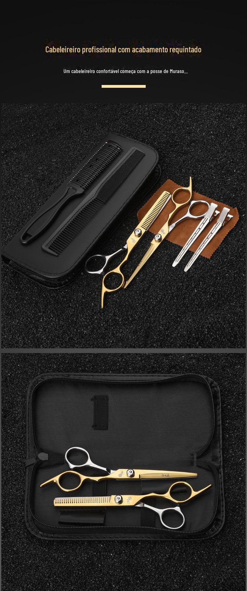 Flat scissors + tooth scissors + scissors bag