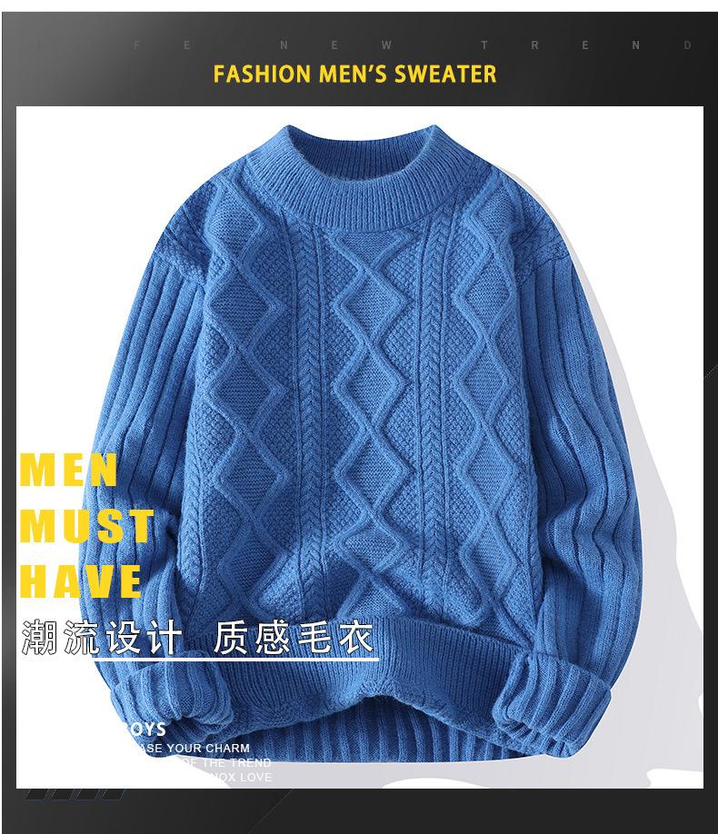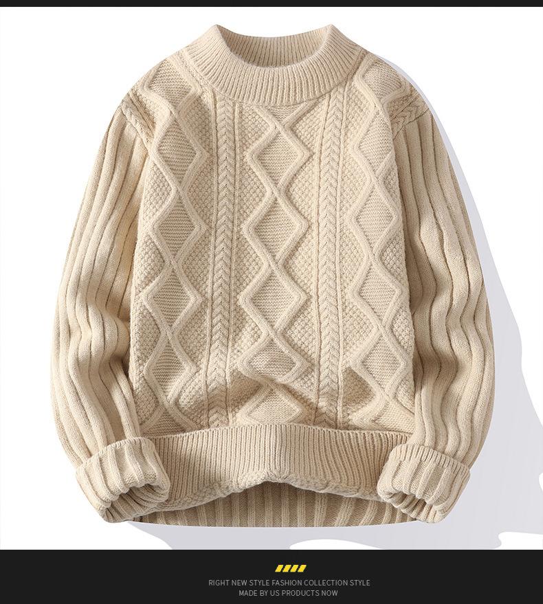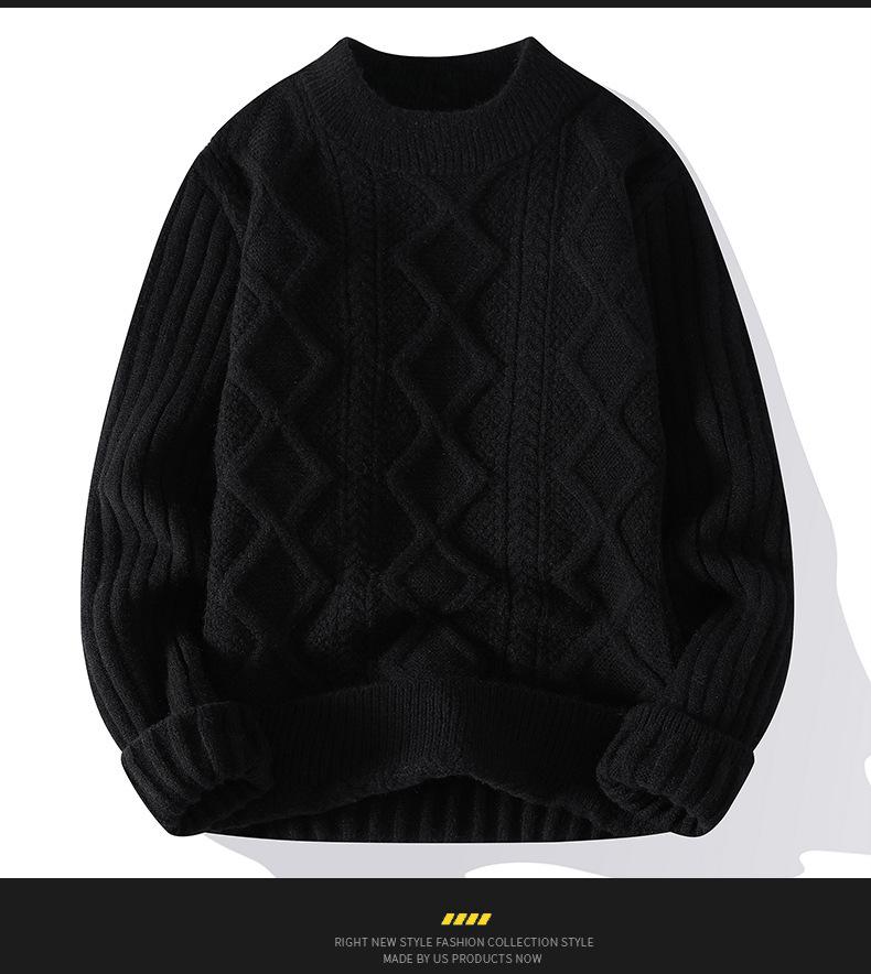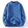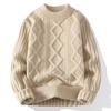 Suéter Torcido de Cor Sólida Casaco Suéter Juvenil Quente Masculino Gola Redonda Manga Longa Tricotado Camiseta Base Tendência