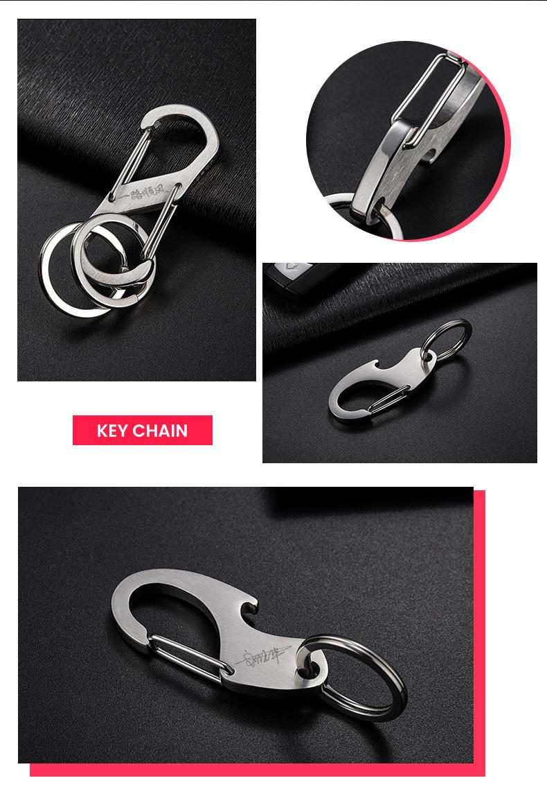 Chaveiro do carro de aço inoxidável simples multifuncional cintura pendurado criativo personalizado gravado chaveiro anel pingente