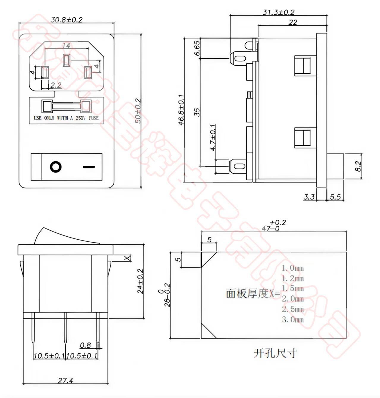 Tomada de Energia Integrada Três-Em-Um AC-303 com Interruptor e Fusível