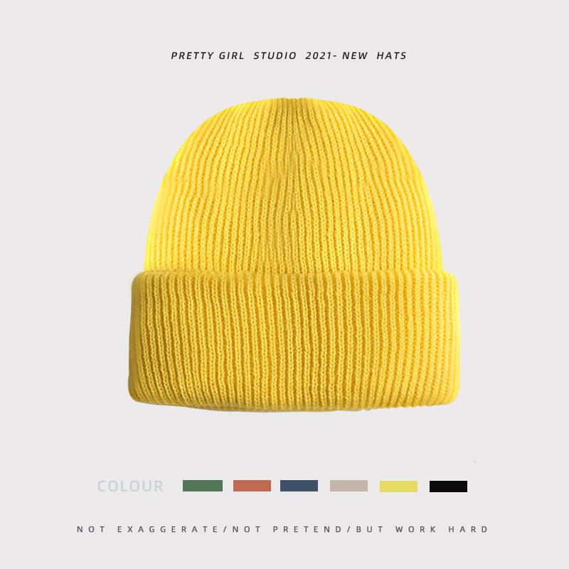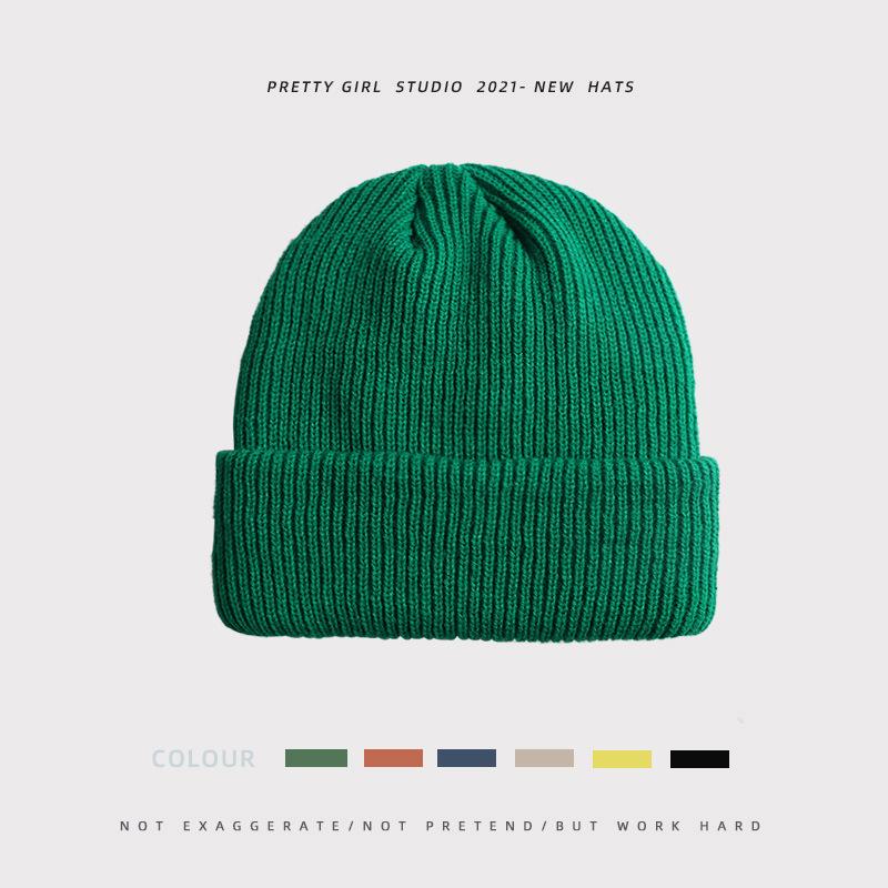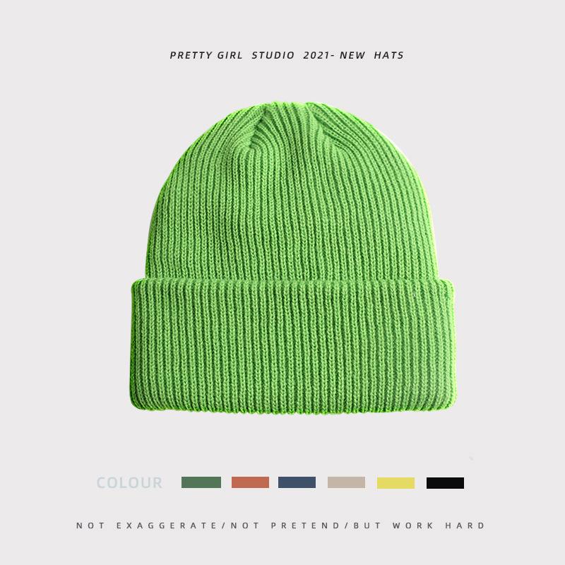 C0427 Solid Color Tung Gold Knitted Wool Hat Fruit Green