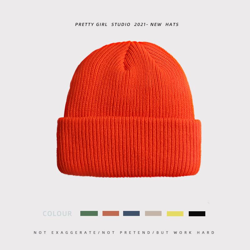 C0427 Solid Color Tung Gold Knitted Wool Hat Orange