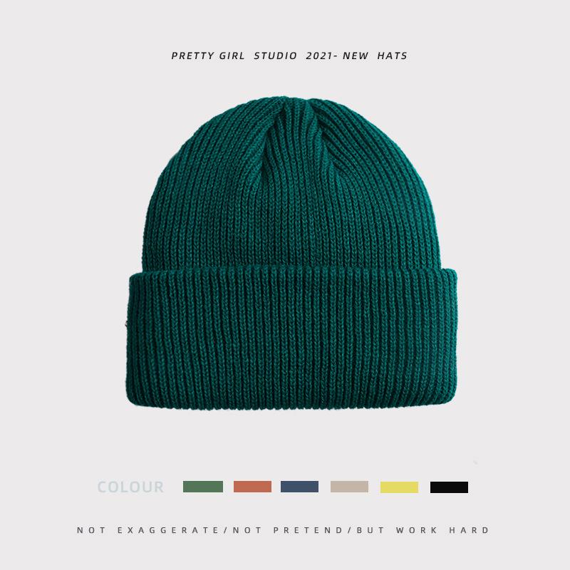 C0427 Solid Color Tung Gold Knitted Wool Hat Dark Green