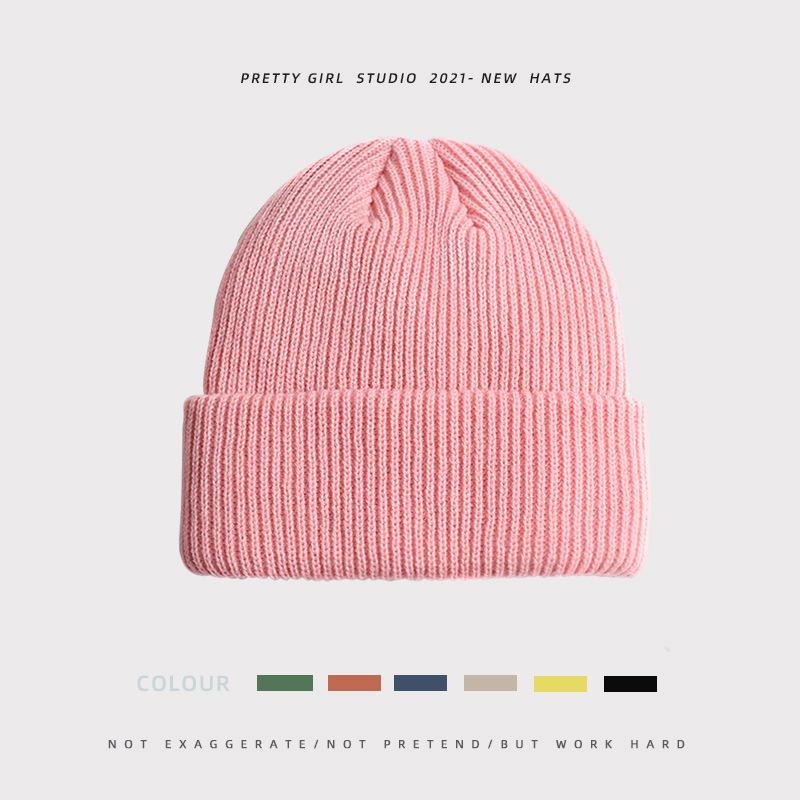 C0427 Solid Color Tung Gold Knitted Wool Hat Pink