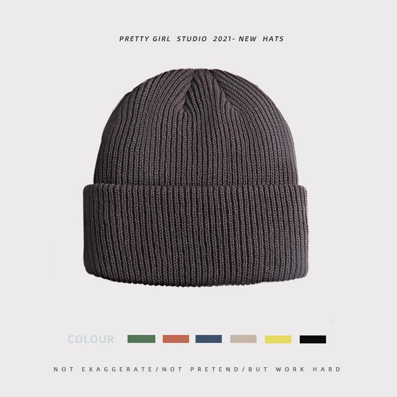 C0427 Solid Color Tung Gold Knitted Wool Hat Coffee