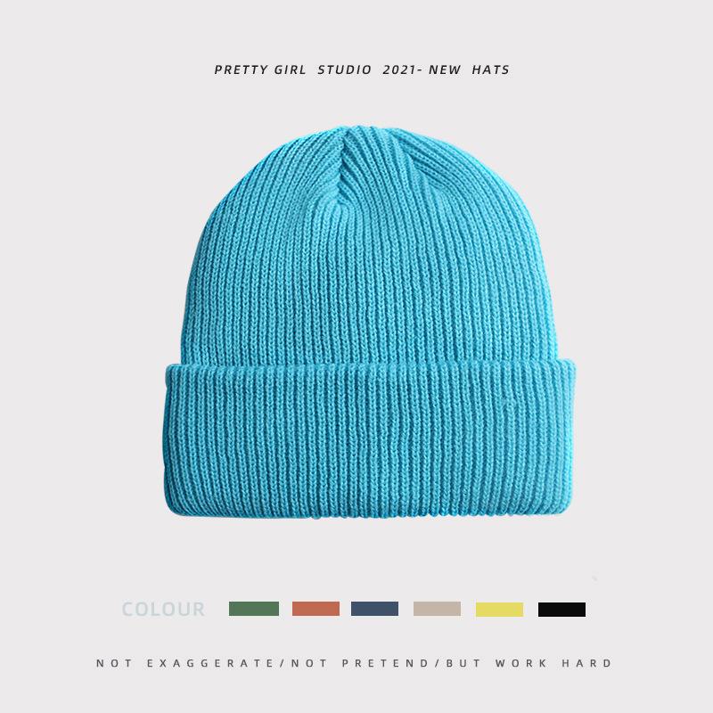 C0427 Solid Color Tung Gold Knitted Wool Hat Lake Blue
