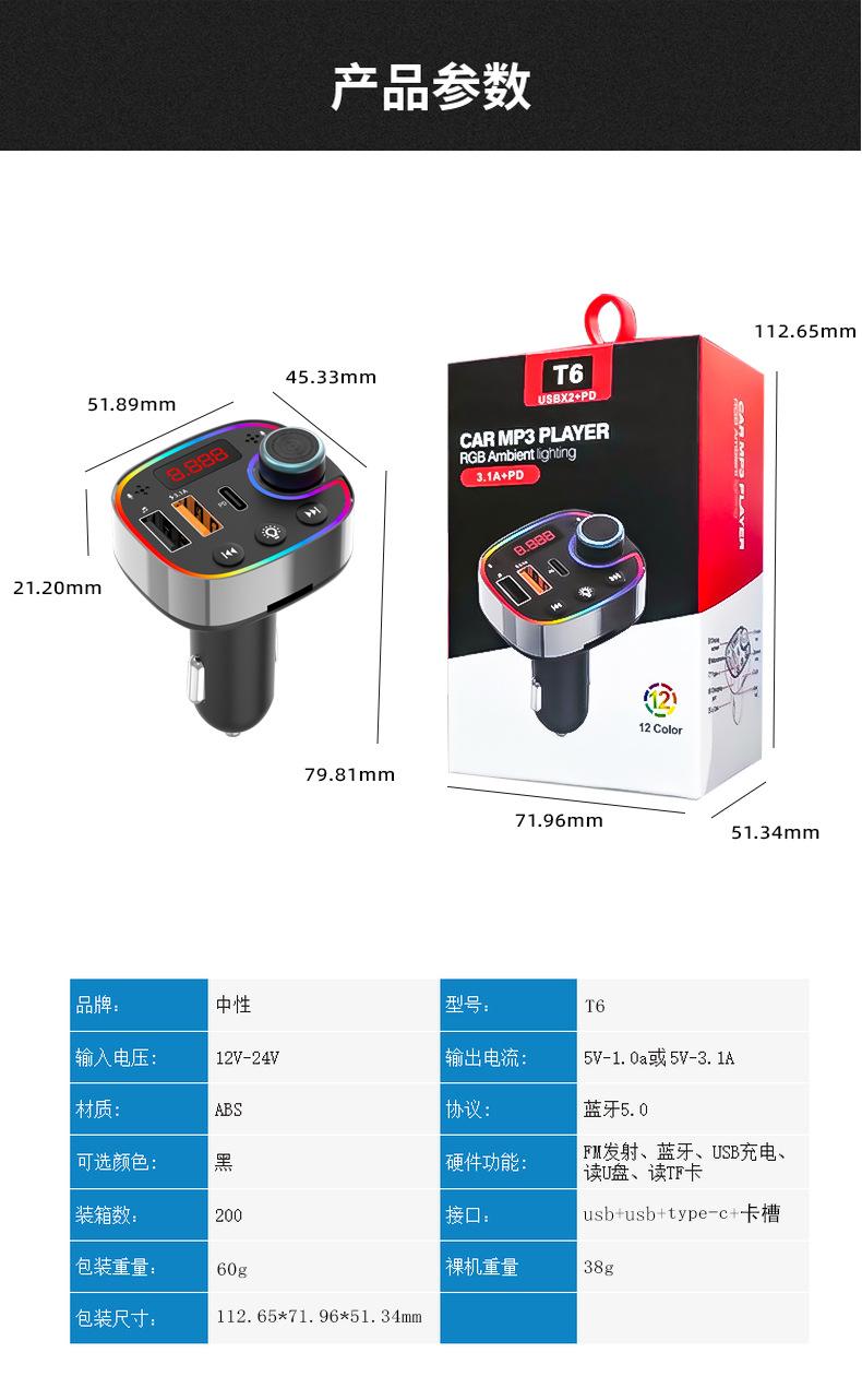 T6 carro Universal Car Charger carro Bluetooth MP3 mãos-livres microfone carregador de telefone móvel carregador de carro FM frequência de exibição digital
