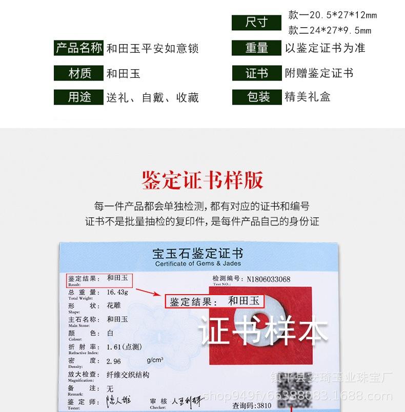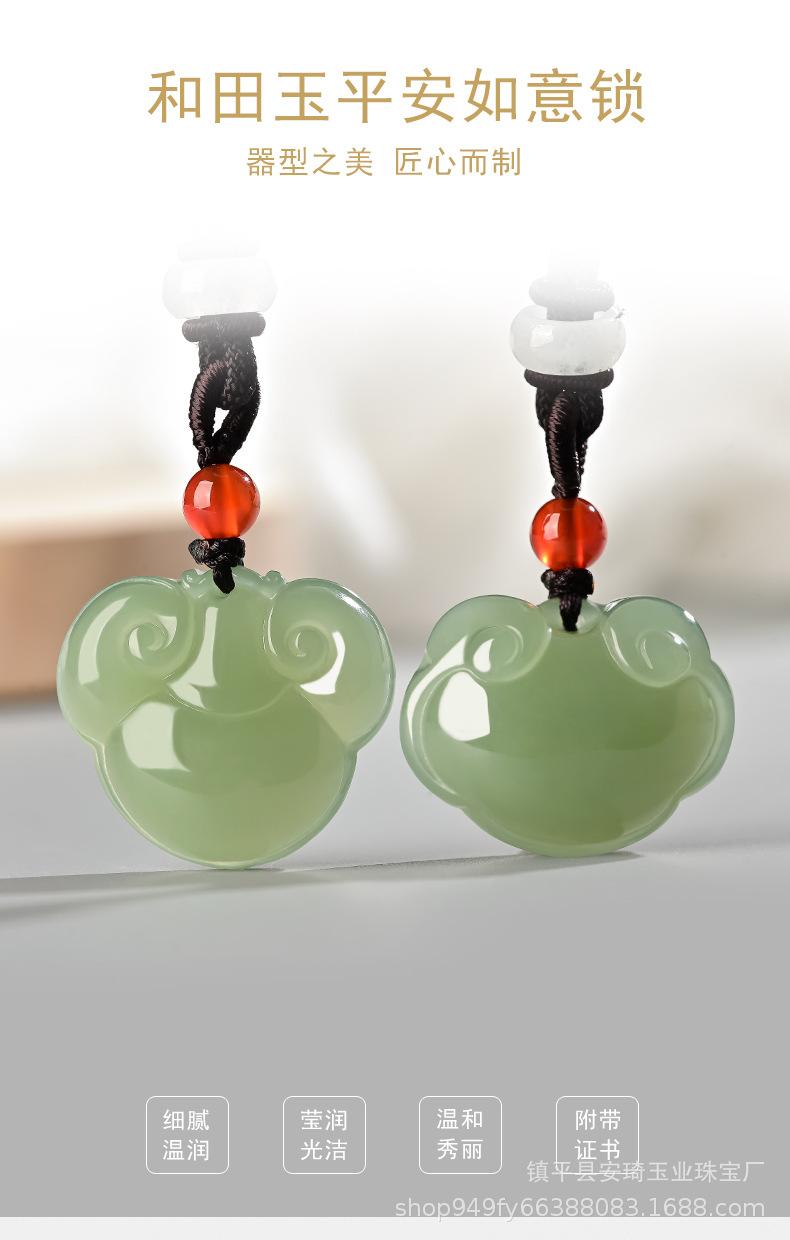 Natural Xinjiang Hetian jade Ruyi paz bloqueio jade pingente longa vida rica fechadura jade colar masculino e feminino pingente de jade