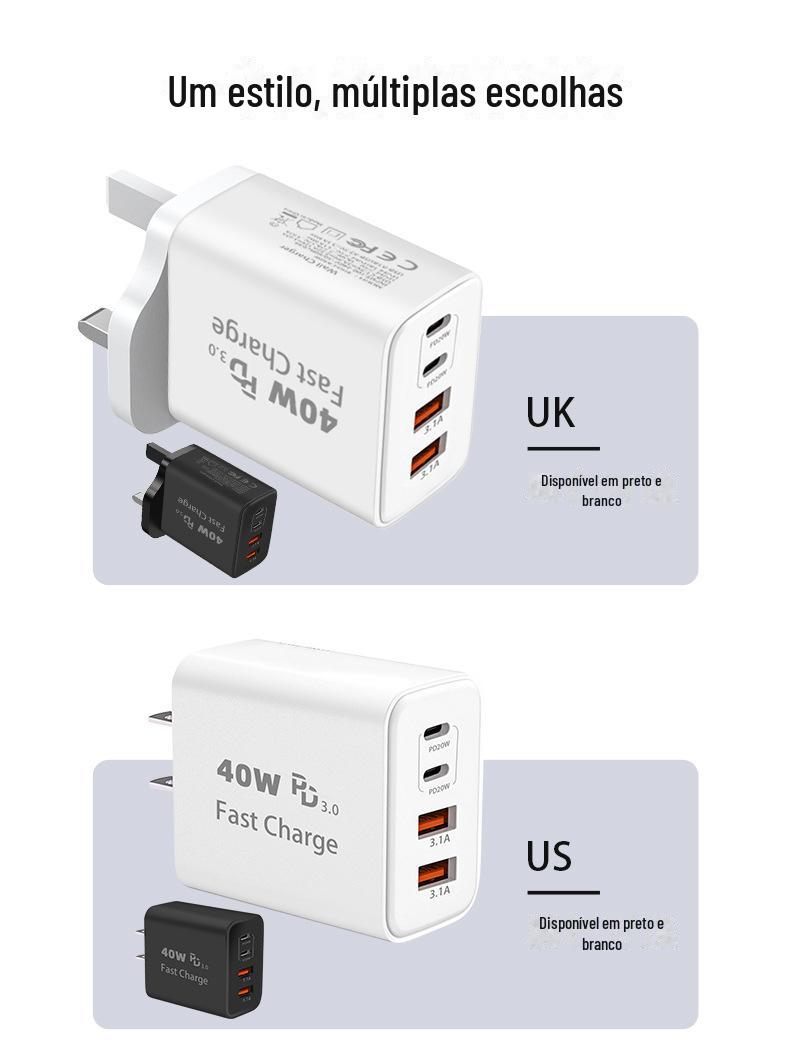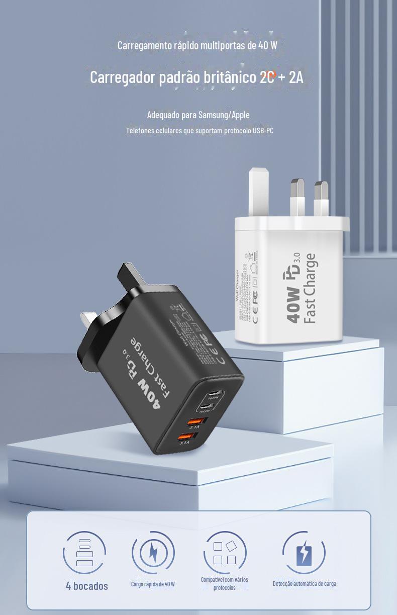 Cross-border 40W Apple Charger Regulamentos britânicos aplicáveis à Apple 15 Samsung S24 Huawei Tablet Notebook cabeça de carregamento rápido
