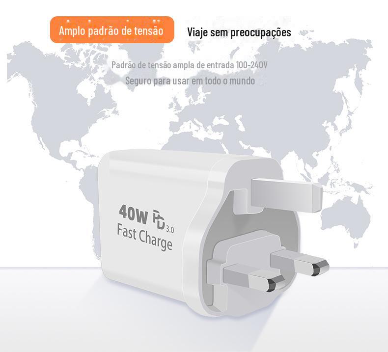 Carregador Apple de 40 W transfronteiriço, padrão do Reino Unido, adequado para Apple 15, Samsung S24, Huawei, tablet, notebook, cabeça de carregamento rápido