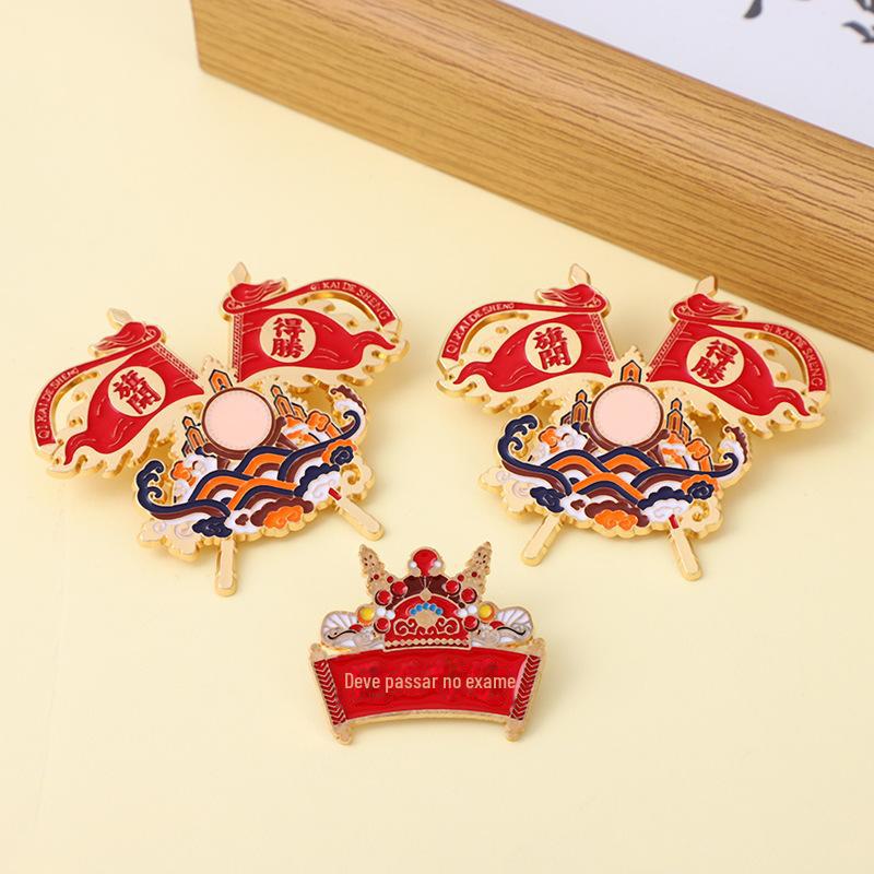 2024 nova bandeira para ganhar todos os exames vai passar o distintivo de metal estilo chinês decoração de liga no vestibular presente de formatura