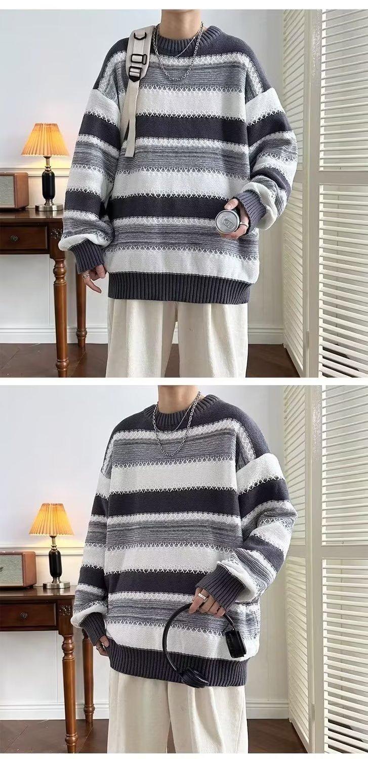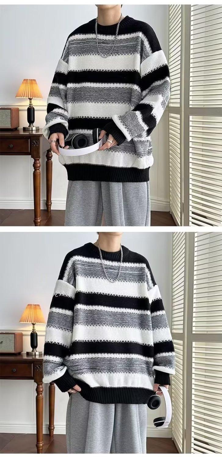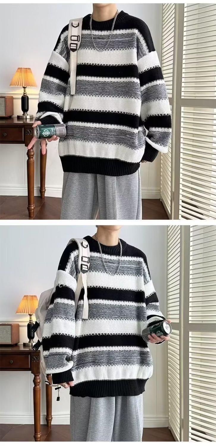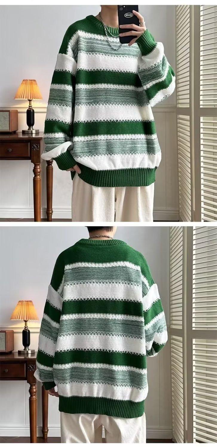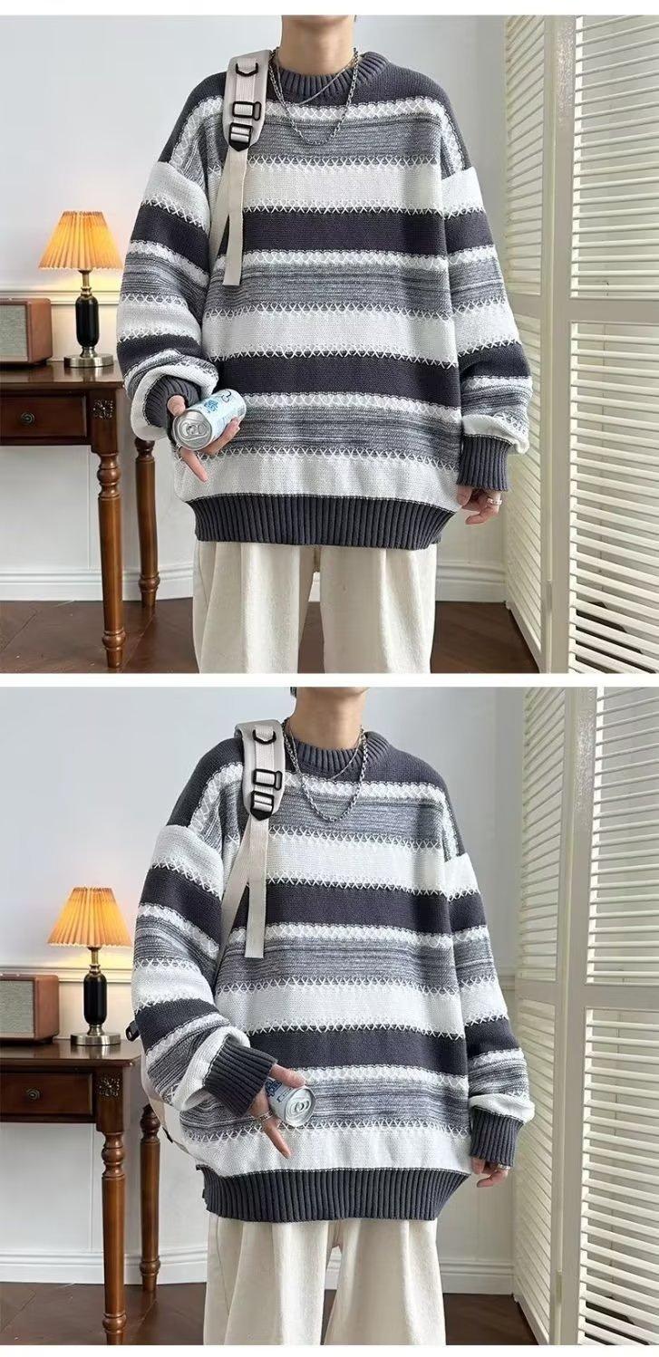 Compre Suéter estilo preguiçoso de outono e inverno, masculino, marca da moda, listrado, solto, grande, suéter de alta qualidade no atacado no Joom.pro