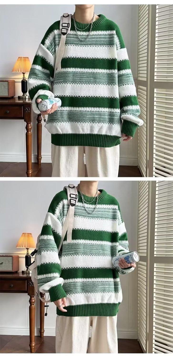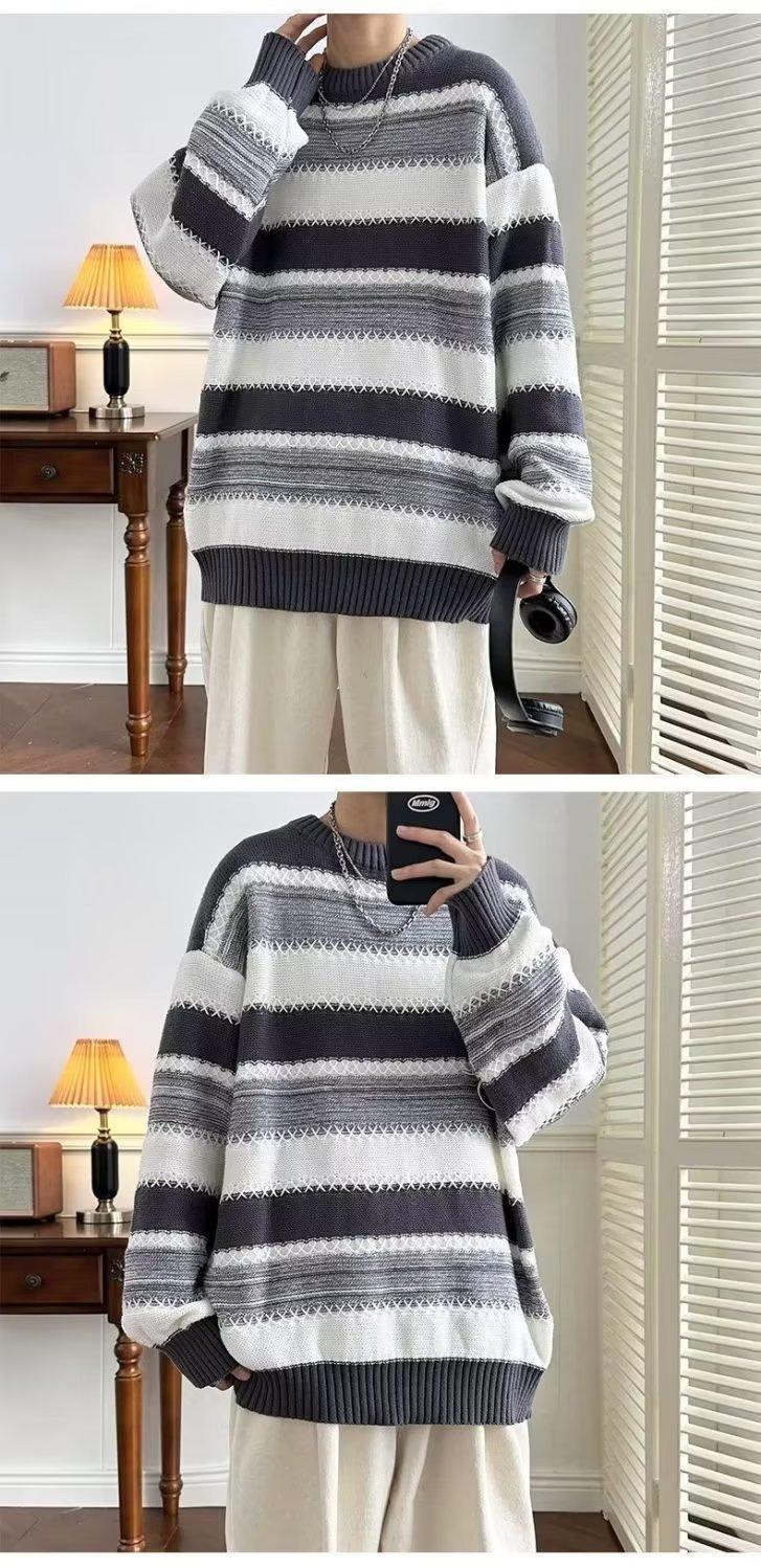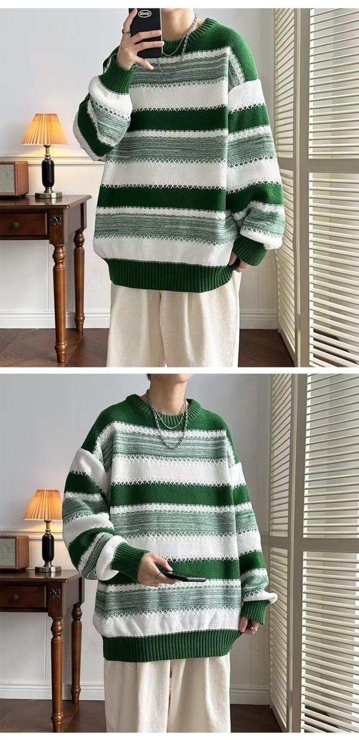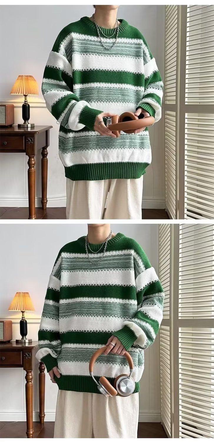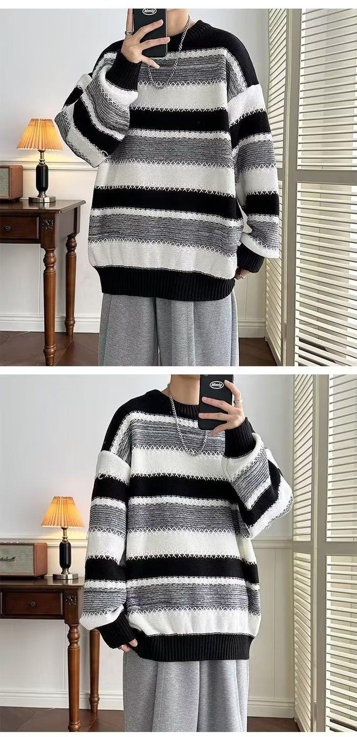 Compre Suéter estilo preguiçoso de outono e inverno, masculino, marca da moda, listrado, solto, grande, suéter de alta qualidade no atacado no Joom.pro