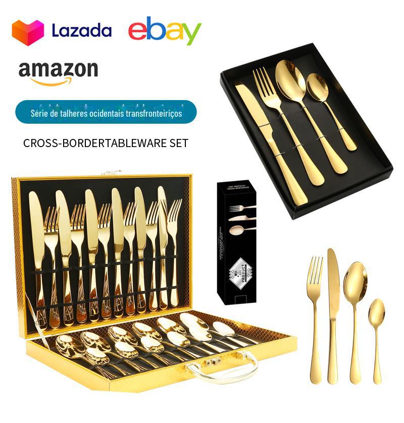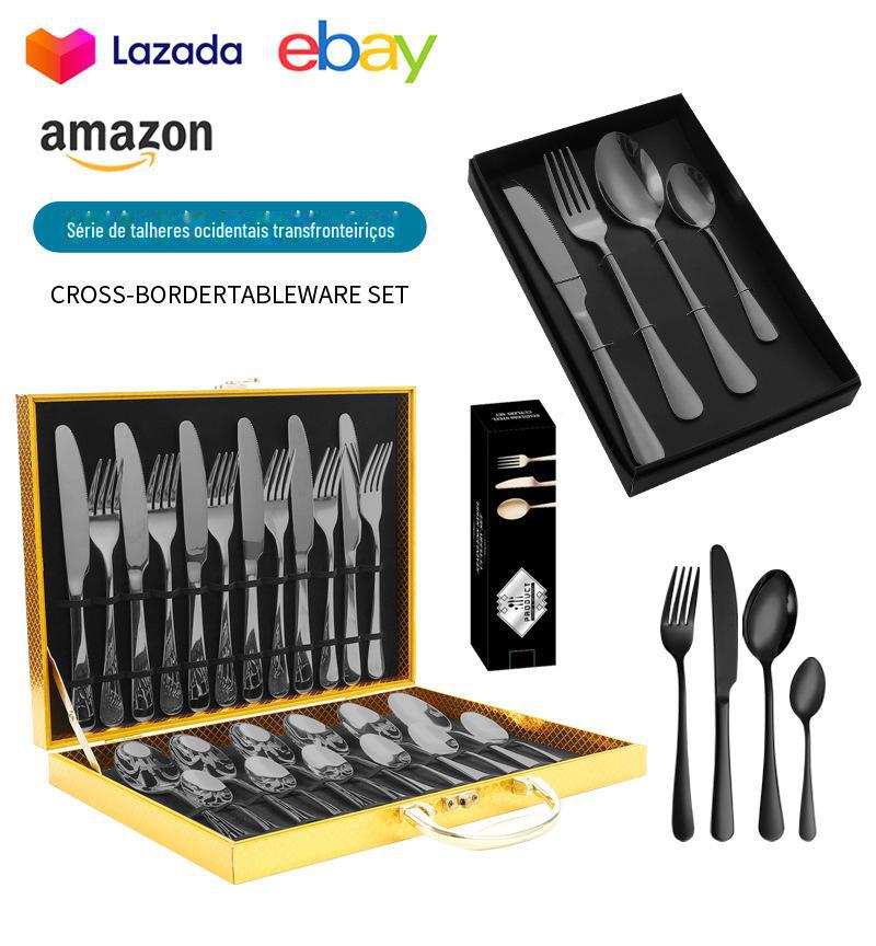 Popular Transfronteiriço 1010 Talheres de Aço Inoxidável Conjunto de 4 Peças Simples Ocidental Faca de Bife, Garfo e Colher Conjunto Caixa de Presente