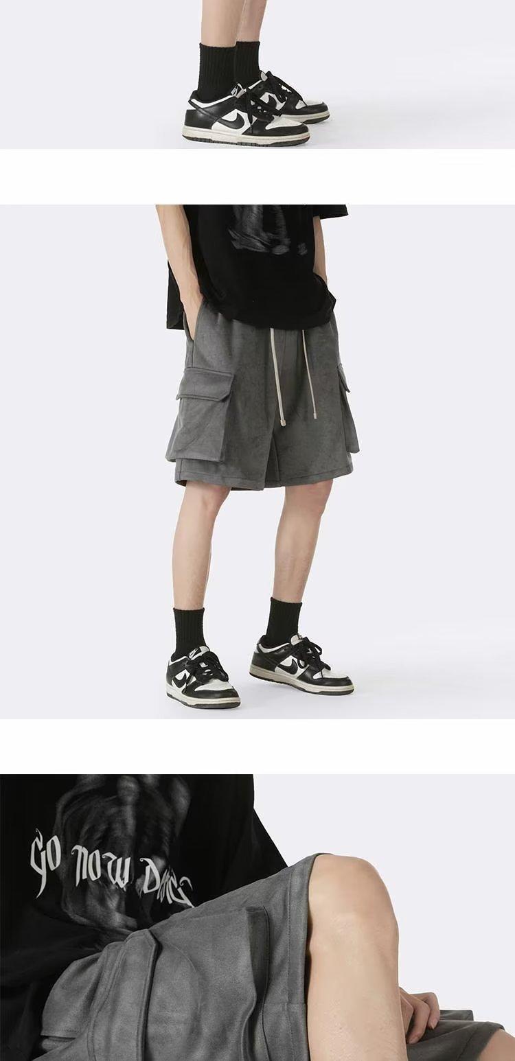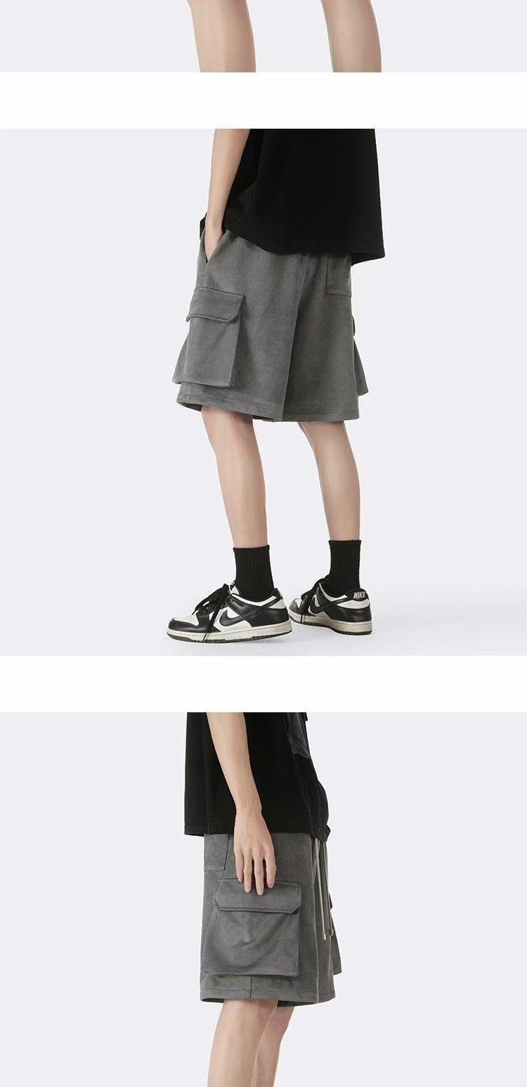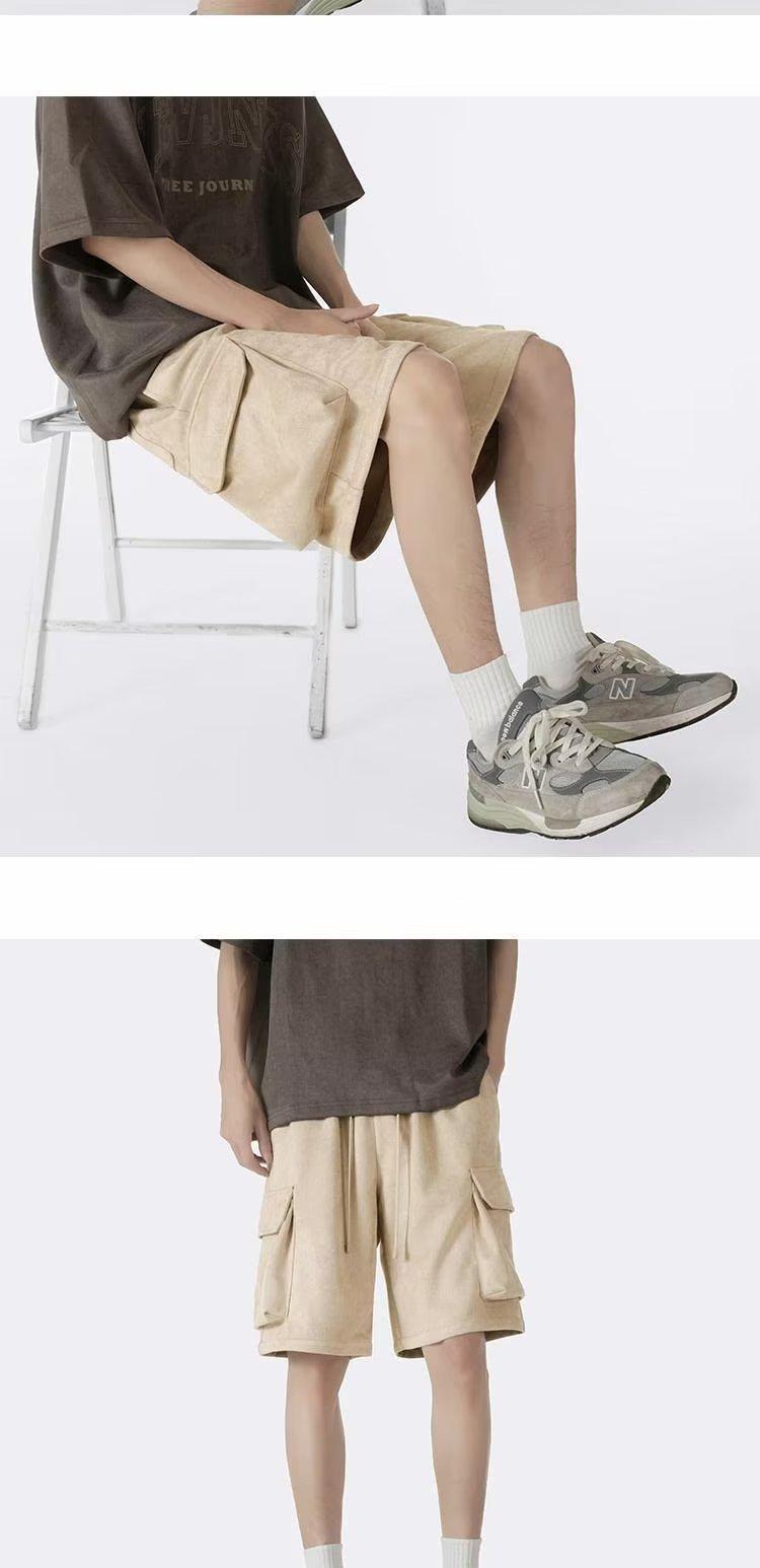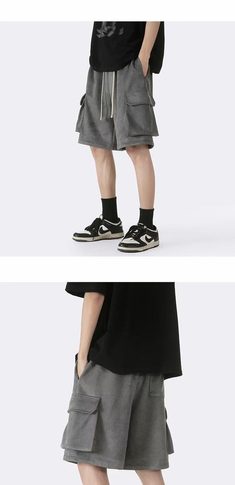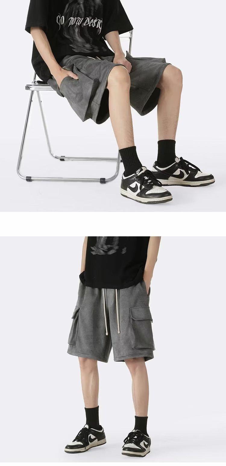 Shorts de trabalho de camurça masculino verão fino maré calças retas. Calças esportivas casuais soltas da moda