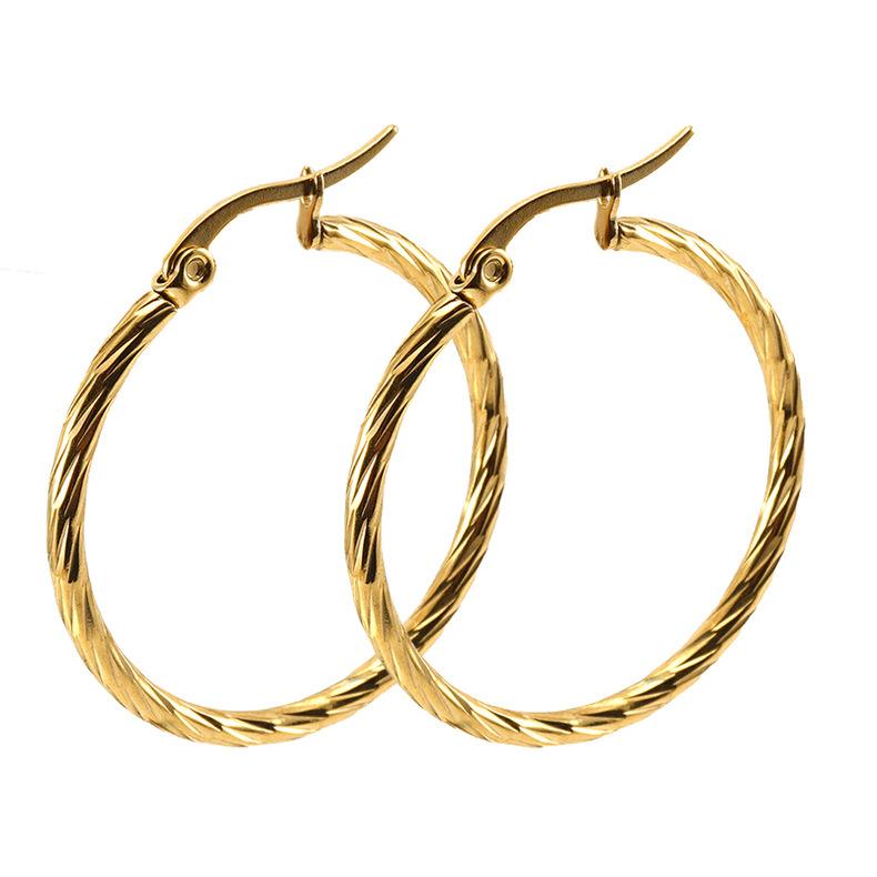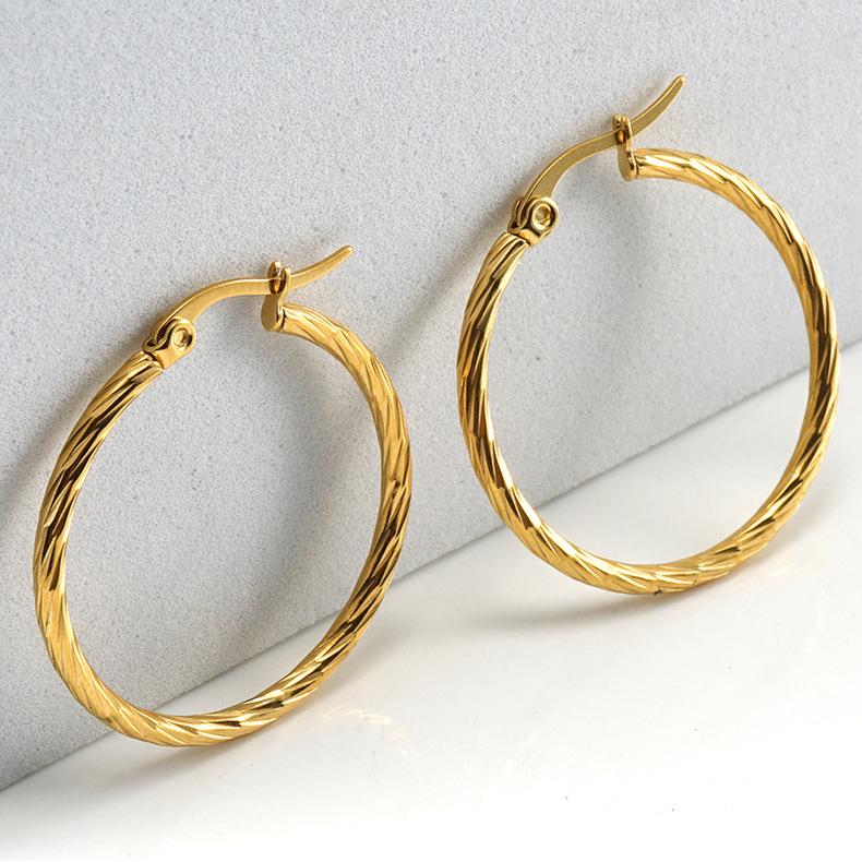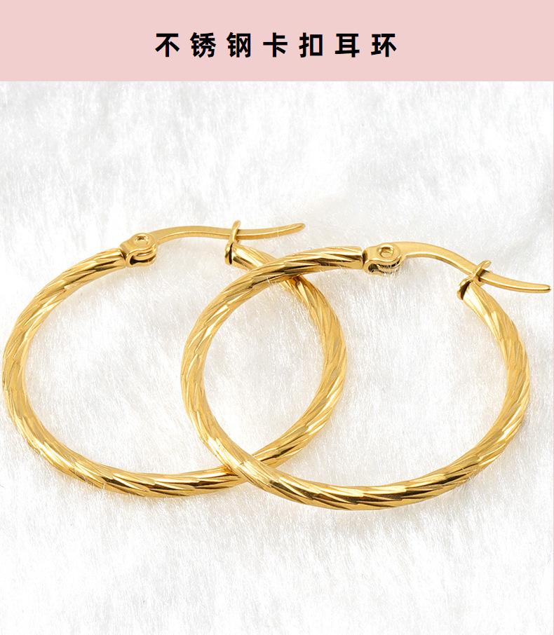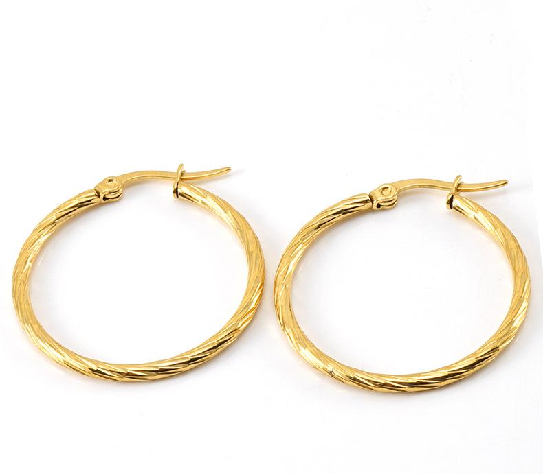 Novos brincos de torção de aço inoxidável 18K transfronteiriços para mulheres moda europeia e americana simples brincos redondos de aço de titânio atacado
