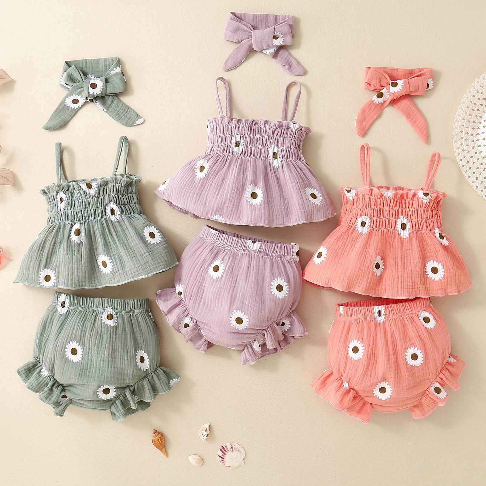 Explosões Transfronteiriças Vestido de Verão para Bebê Menina Vestido de Princesa para Menina Saia de Bebê Verão Vestido de Suspensório Shorts Turbante Conjunto de Três Peças