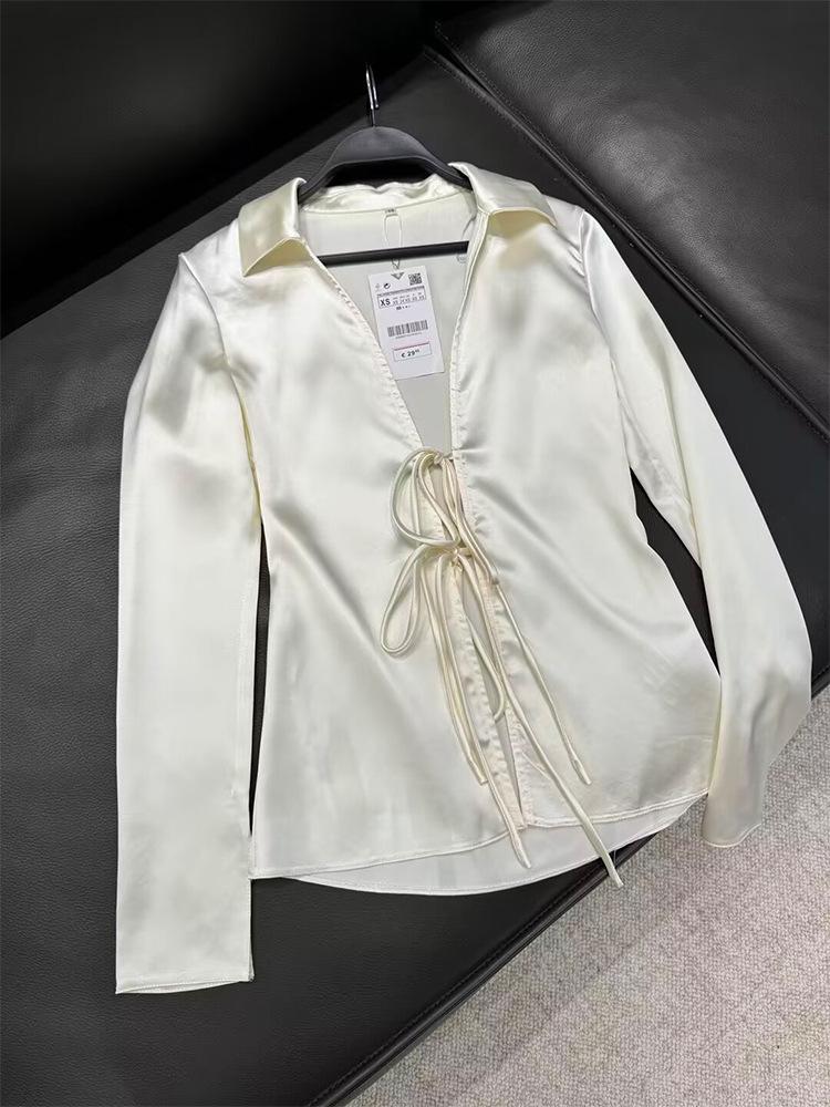 As novas roupas femininas são simples, versáteis e emagrecedoras. A camisa de cetim com laço é a tendência mais popular desta temporada. Quer combine com jeans ou saia, pode mostrar um temperamento elegante. O design do laço acrescenta uma sensação lúdica e fofa, enquanto o tecido com textura acetinada confere um efeito visual nobre e elegante. Esteja você indo para o trabalho ou para um encontro, esta camisa pode facilmente prendê-lo em diversas ocasiões e torná-lo o foco da multidão.