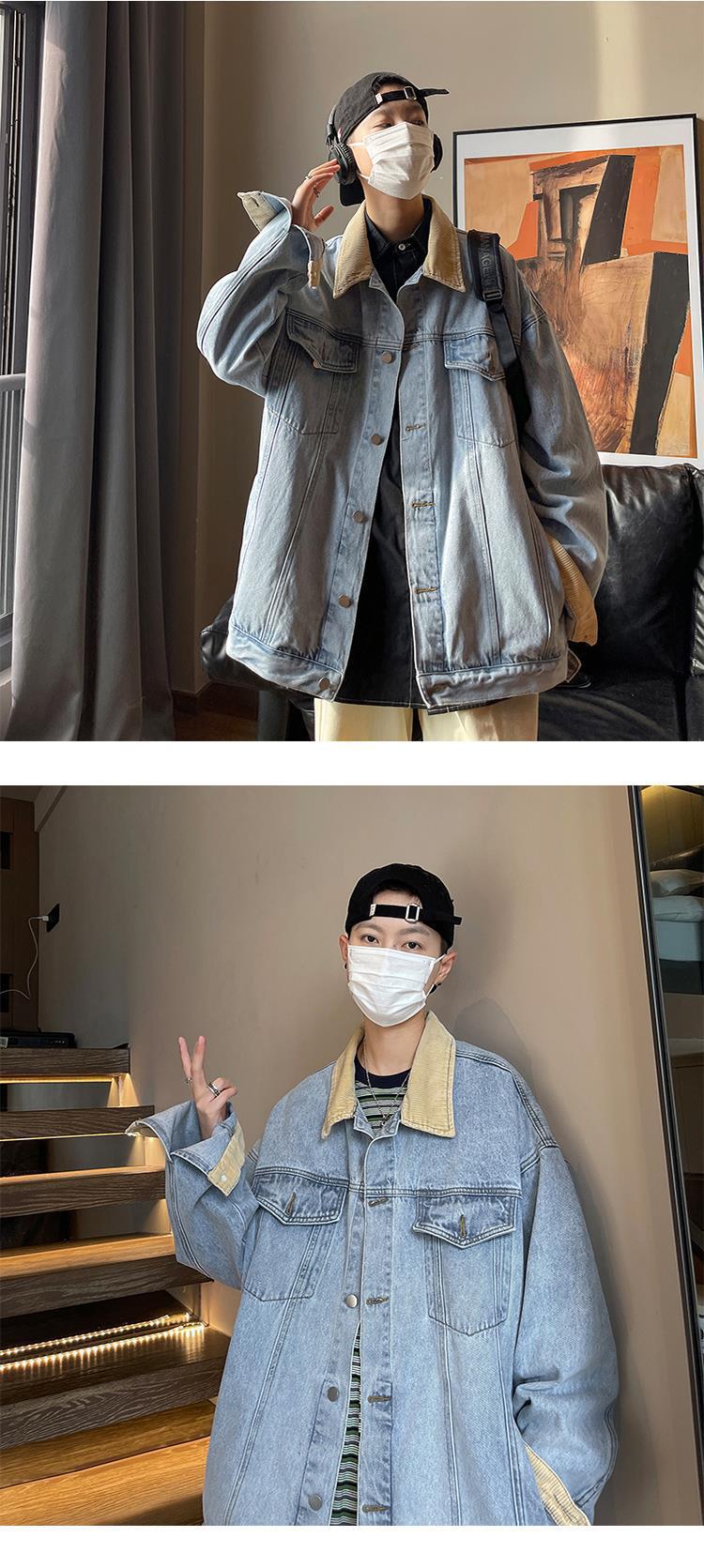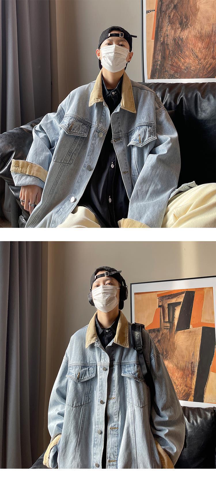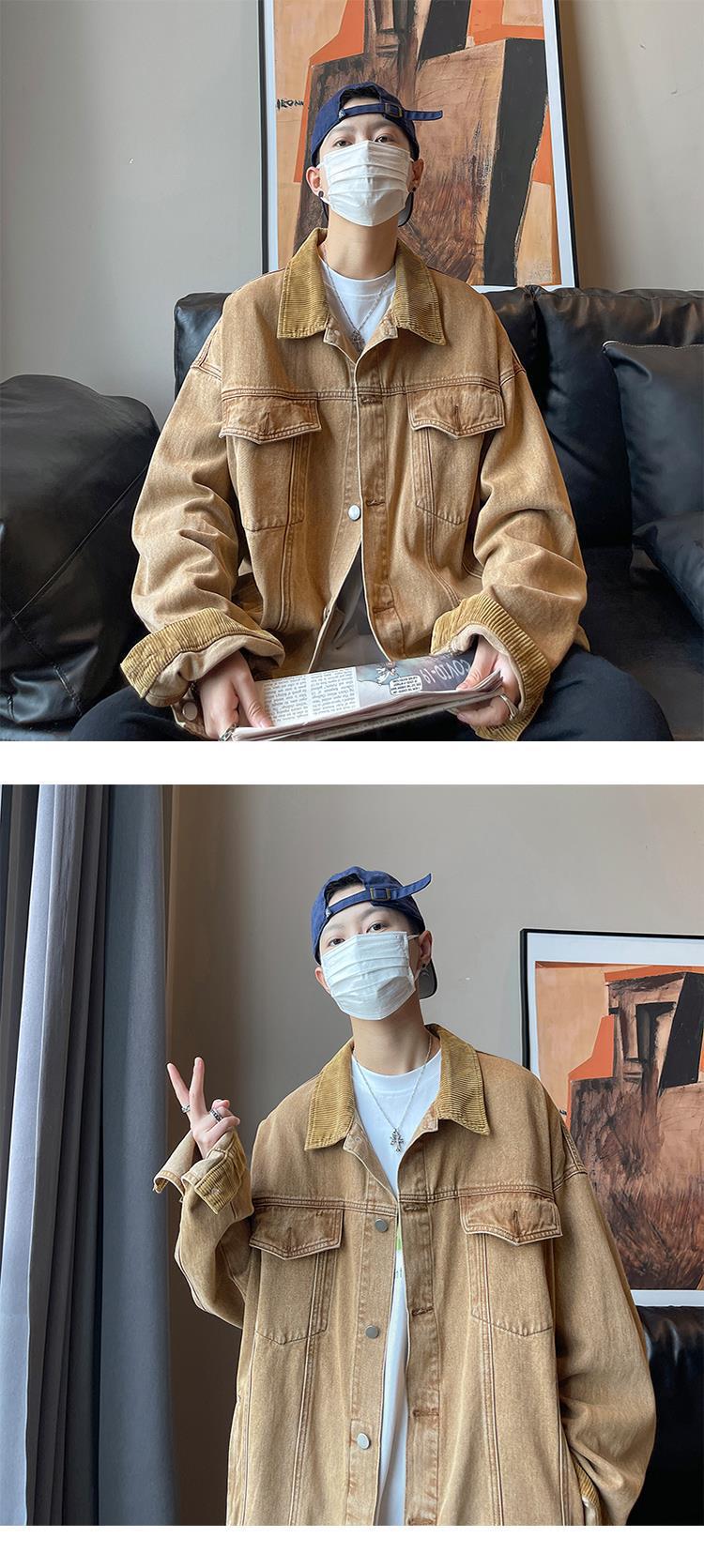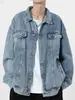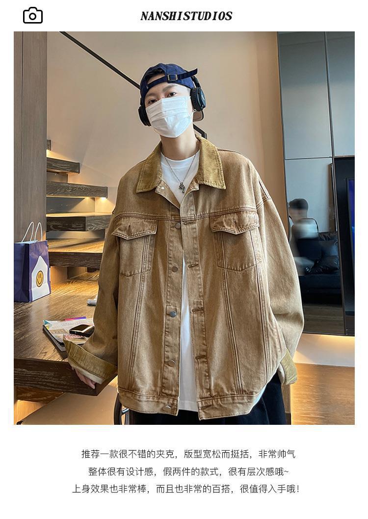 Jaqueta jeans retrô estilo americano masculina, grande, folgada, primavera e outono, lavada, antiga, elegante, jaqueta de trabalho