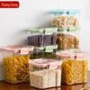 Pote selado de qualidade alimentar para cozinha doméstica, pote de plástico transparente para armazenamento de especiarias de aveia e nozes, caixa de armazenamento de grãos