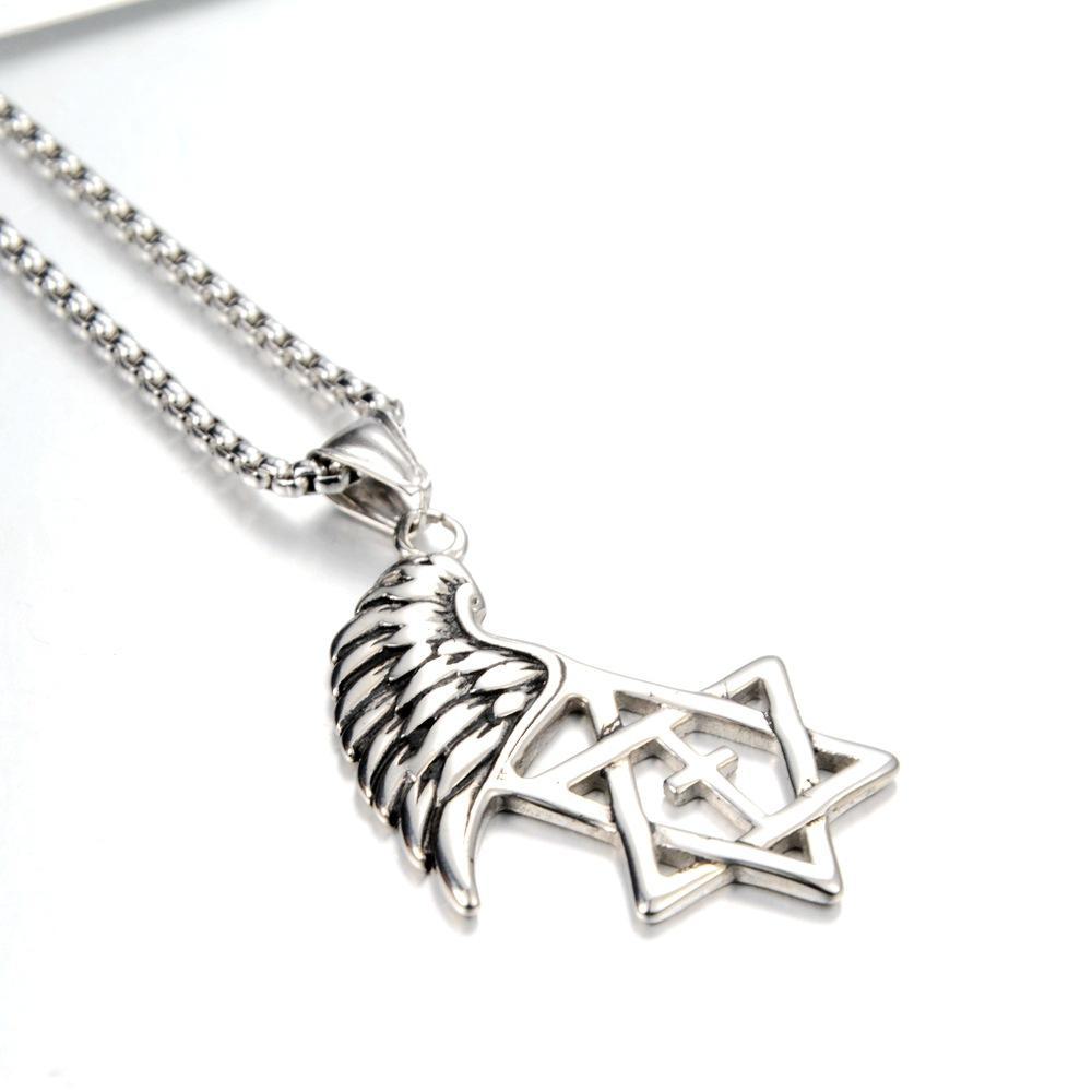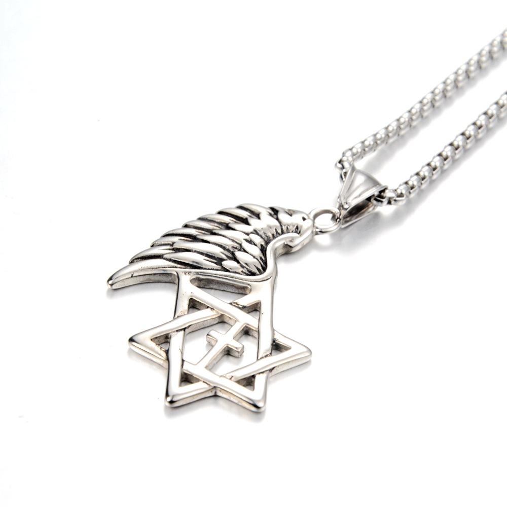 National Fashion Explosions Hip-Hop All-Match Titanium Steel Feather Six-point Star Pingente personalizado masculino e feminino Colar de casal casual