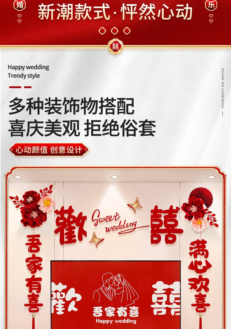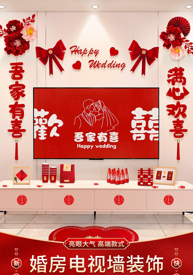 Quarto de Casamento Layout Set Cerimônia de Casamento Casa Nova do Homem Sala de Estar TV Fundo de Parede Decoração de Flores Suprimentos de Casamento Livro Completo