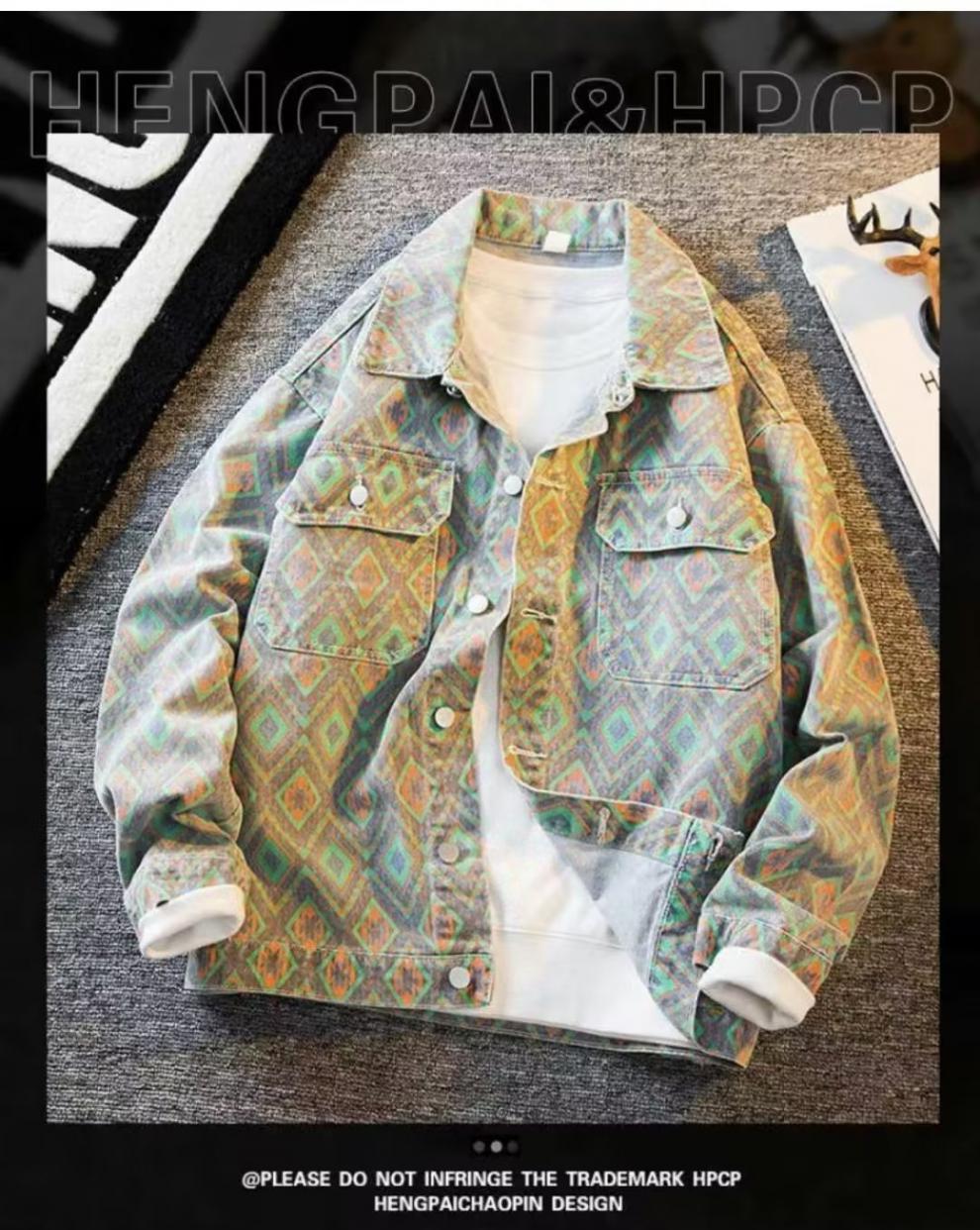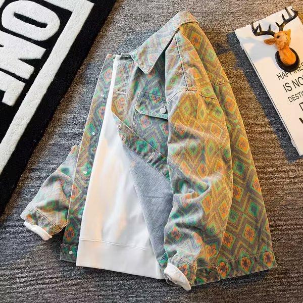 Jaqueta jeans masculina primavera e outono, solta, estilo americano, de rua, de marca da moda, camisa de trabalho masculina, jaqueta de outono
