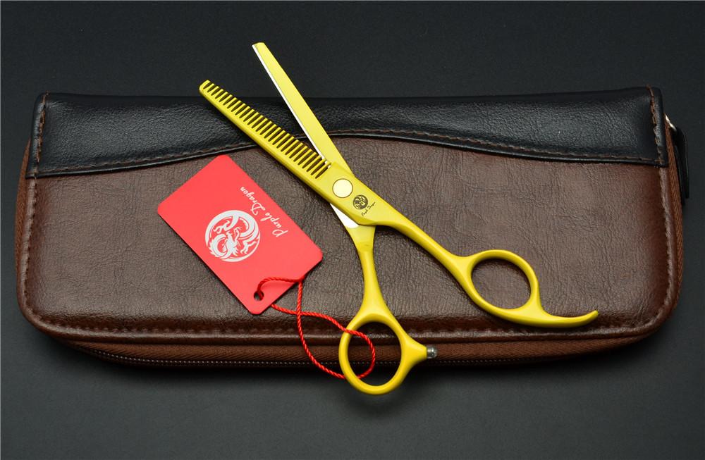 Compre Zilong 5,5 polegadas pintura amarela tesoura tesoura dentes de corte plano tesoura franja corte fino cabeleireiro conjunto ferramentas no atacado no Joom.pro