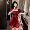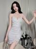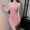 Europeu e americano novo plissado emagrecimento sexy senhora alça vestido curto moda estilo ocidental babado saia quadril