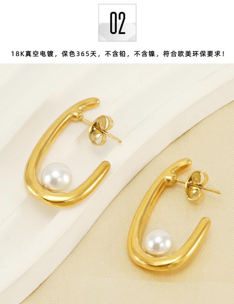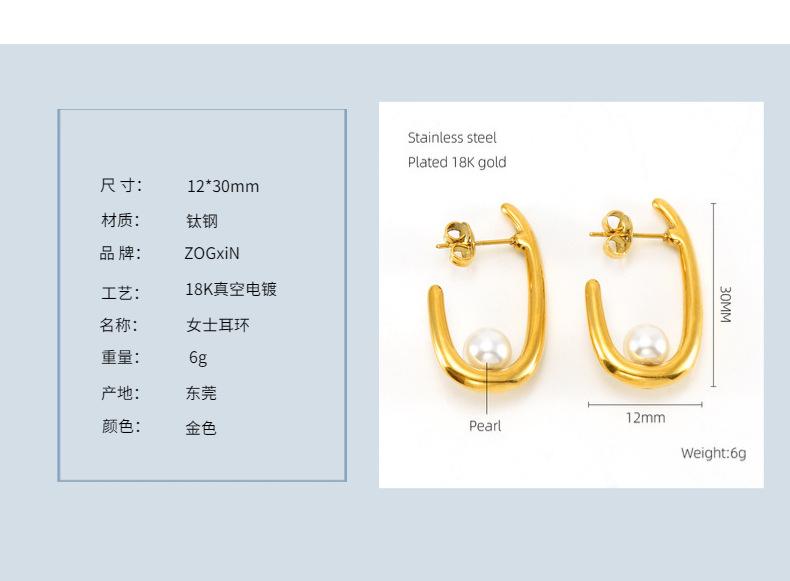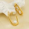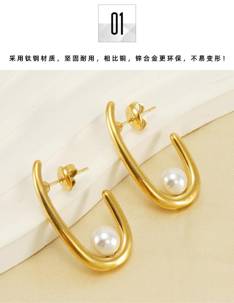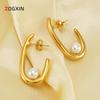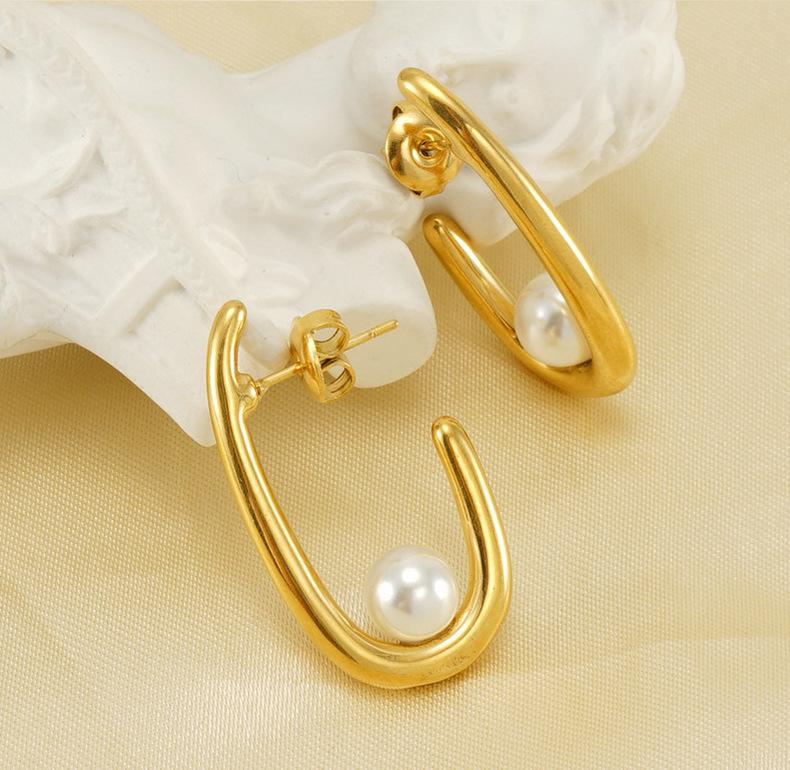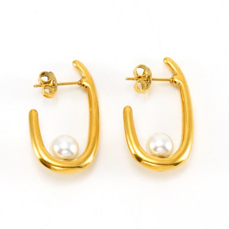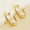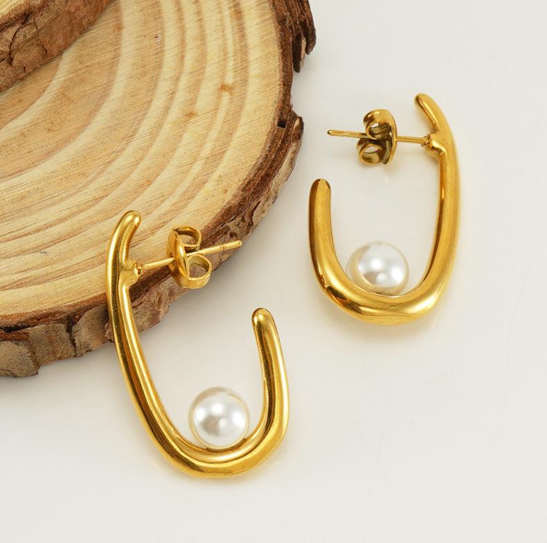 Temperamento de moda transfronteiriça europeia e americana brincos de pérola mulheres francês Internet vermelho 18K aço inoxidável brincos geométricos joias atacado