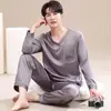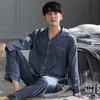 Venda por atacado pijamas homens primavera e outono gelo seda manga comprida seda artificial de alta qualidade masculino fino plus size homewear terno
