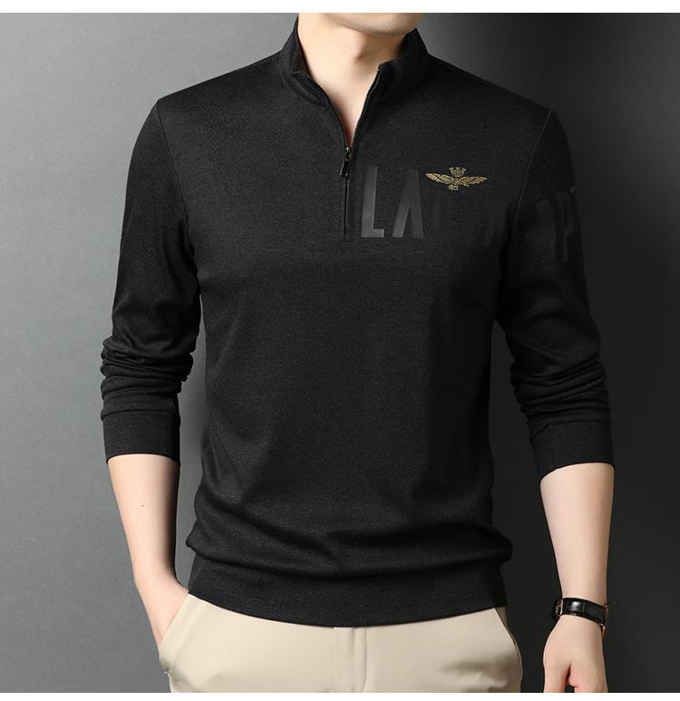Camiseta Masculina de Manga Comprida com Zíper e Gola Alta para Outono, Adequada para Usar ao Ar Livre, Larga e Espessa para Homens de Meia Idade e Idosos