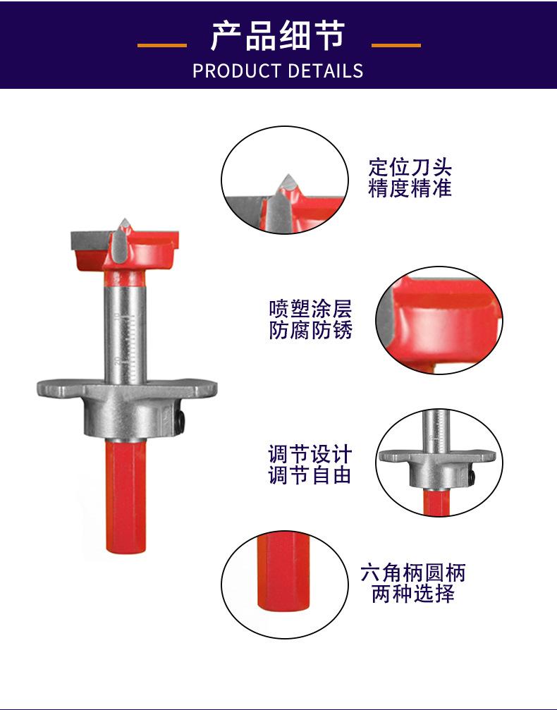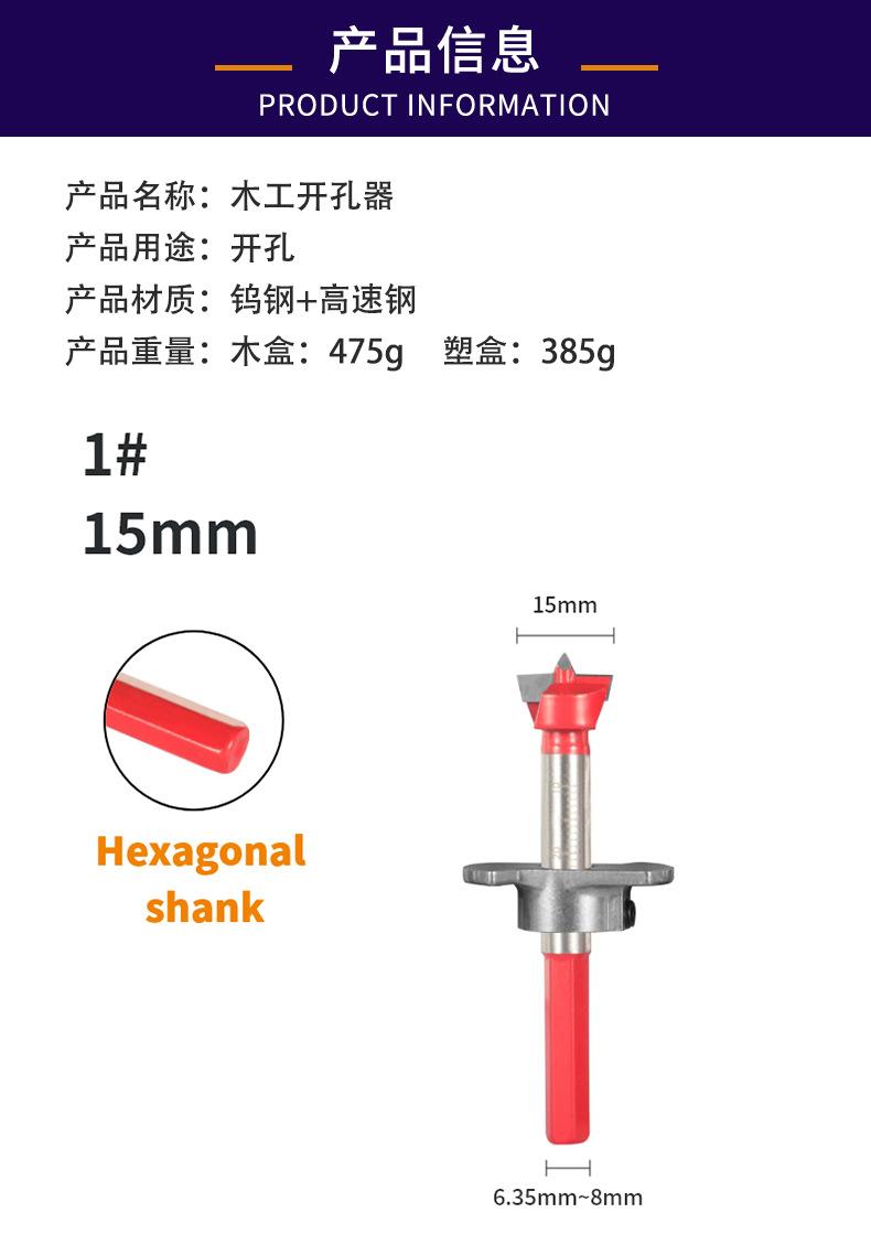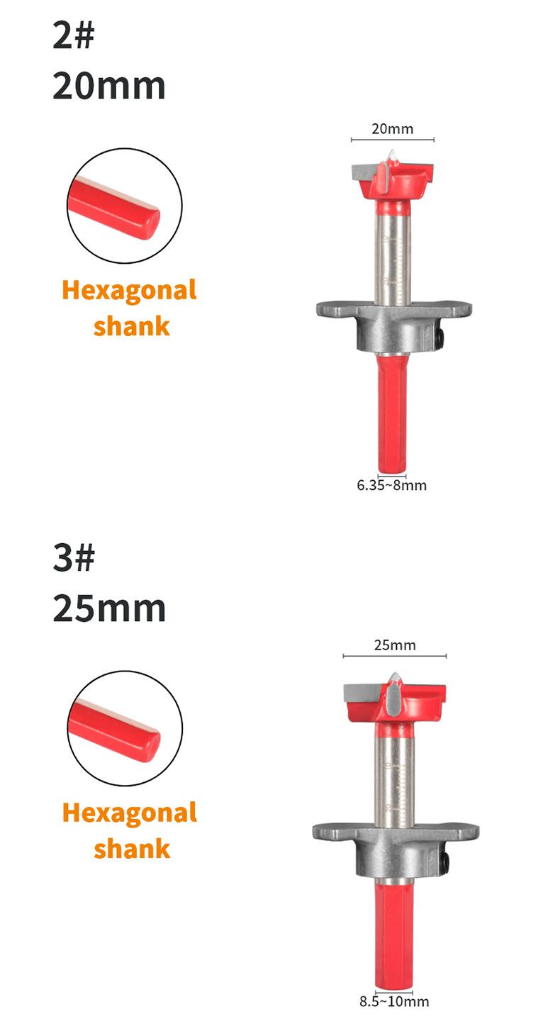 Abridor de furos de madeira vermelha punho hexadecimal punho redondo asa plana broca de madeira redonda porta de madeira abridor de furos