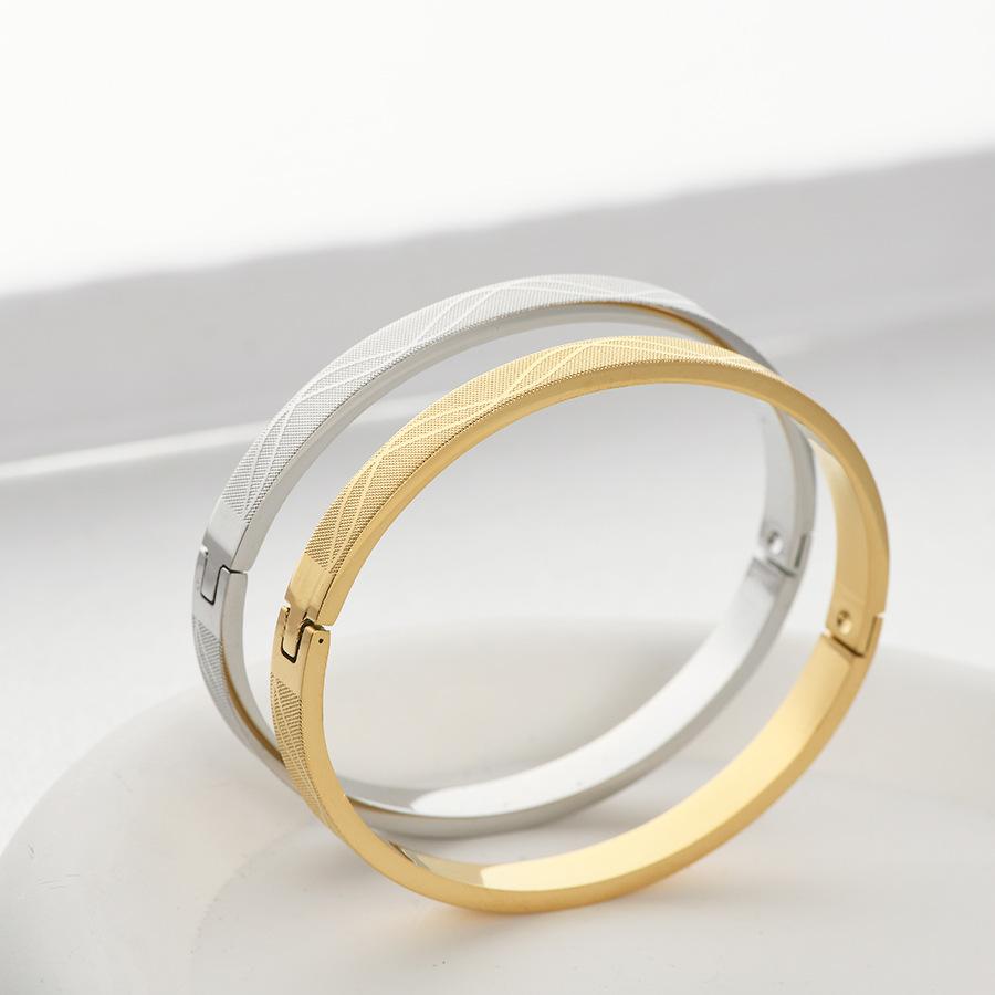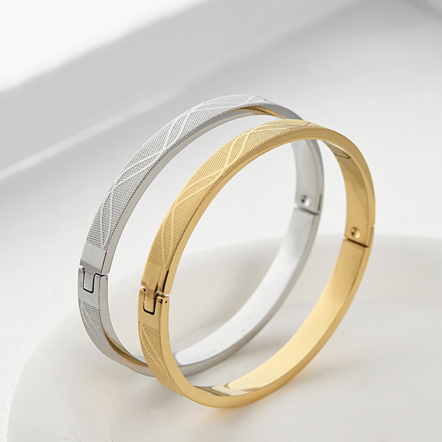Compre Pulseira transfronteiriça nova de aço titânio criativa simples corrosão padrão de onda fecho de malha pulseira de casal decoração de aço inoxidável no atacado no Joom.pro