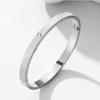 Fabricantes de pulseira de aço de titânio atacado aberto ajustável em forma de c pulseira feminina gravada padrão texto logotipo pulseira de aço inoxidável