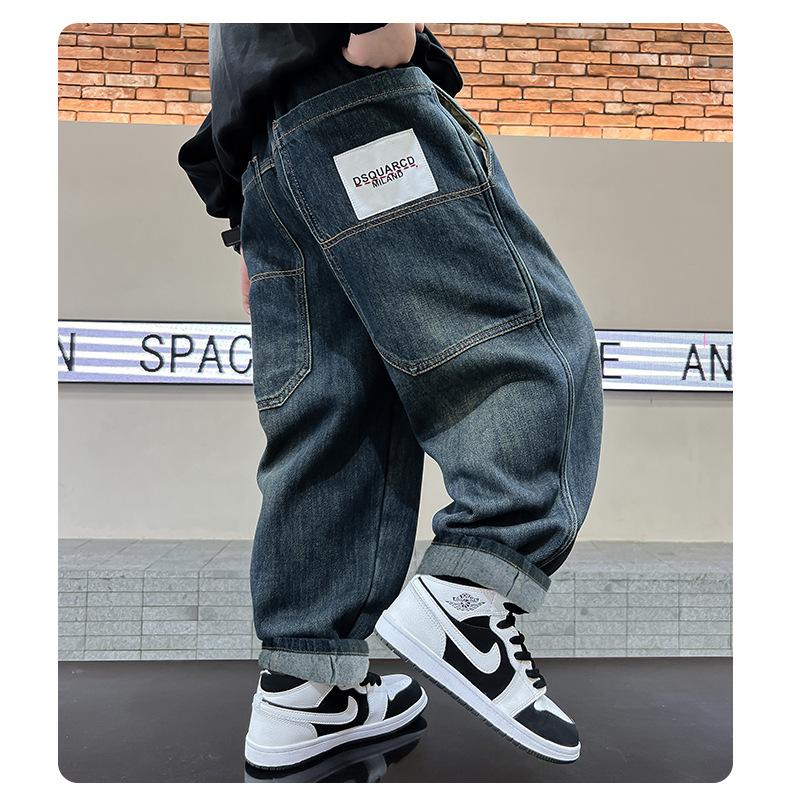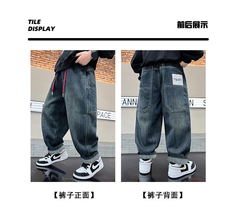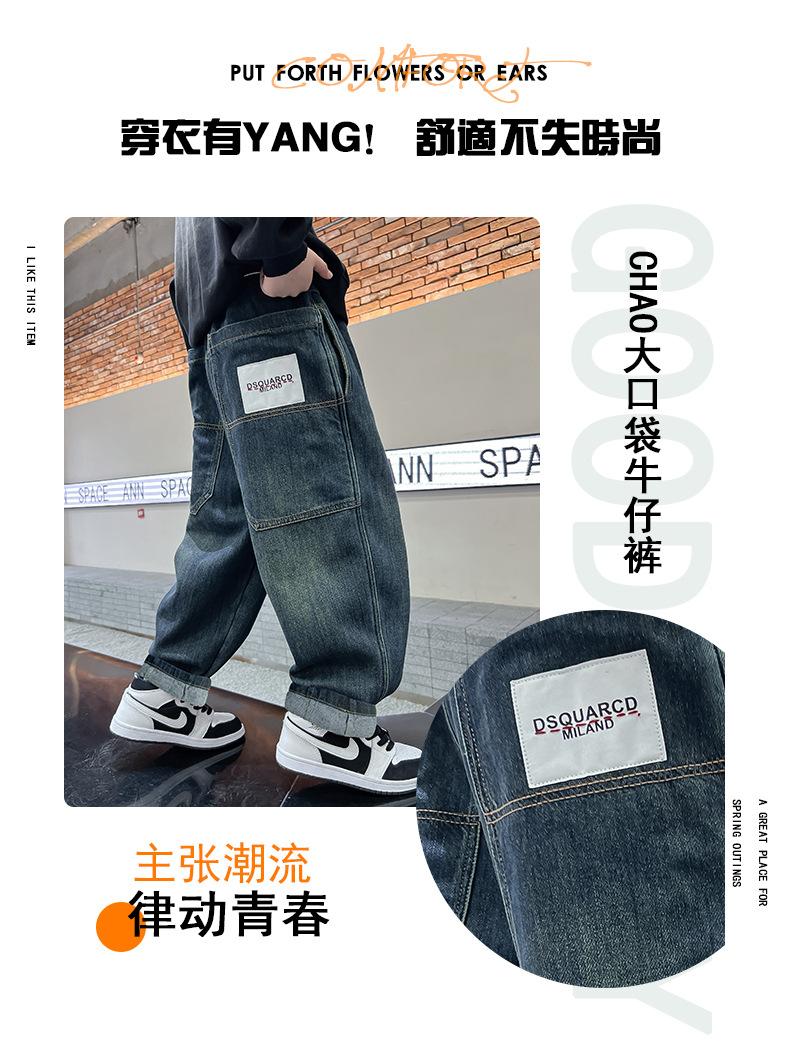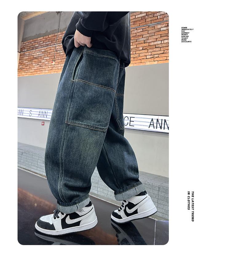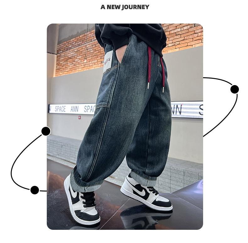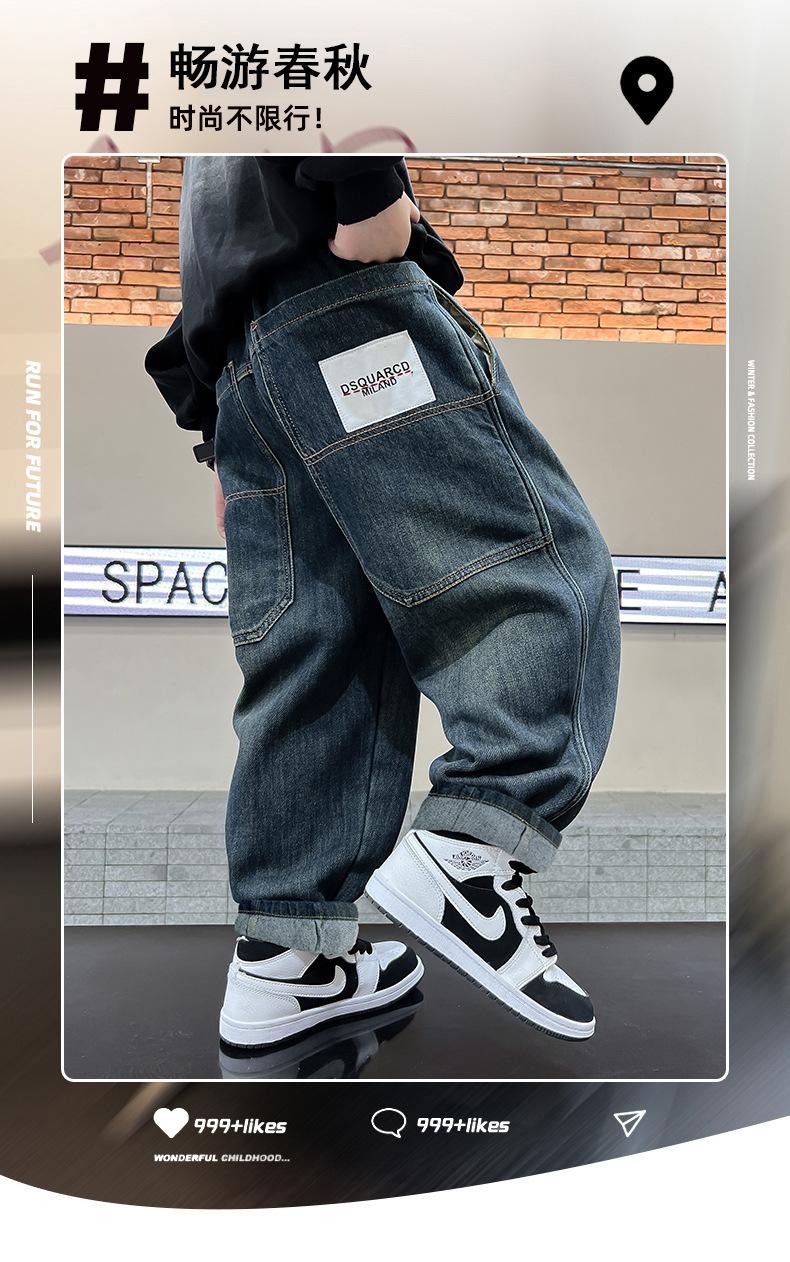 Roupa Infantil Calças de Menino Primavera e Outono 2025 Novo Estilo Calças de Primavera para Crianças Médias e Grandes Jeans Infantil Roupa de Primavera Casual Moderna
