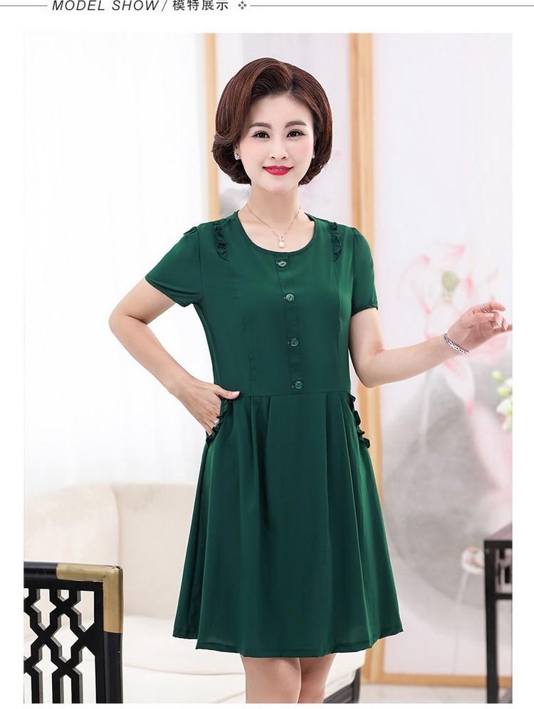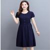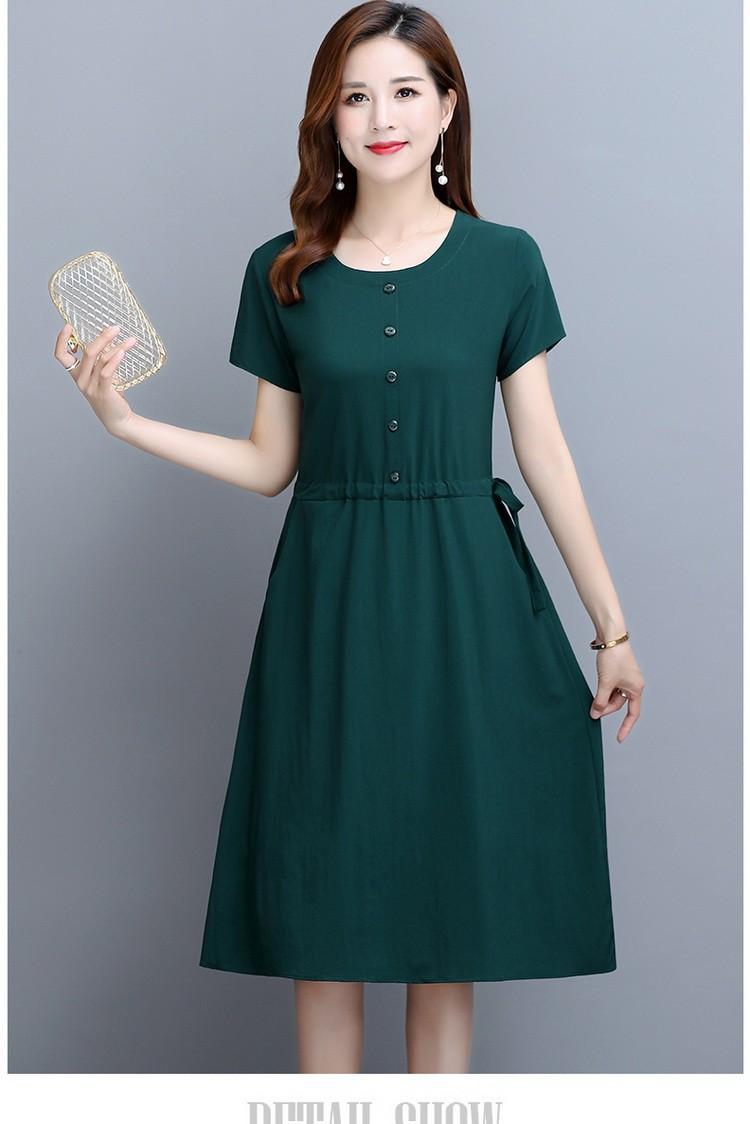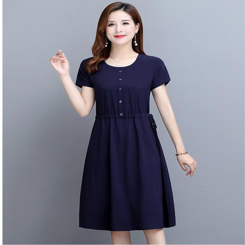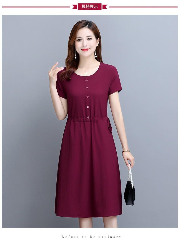 Uma nova geração de cabelo emagrecendo mãe vestido casual verão temperamento algodão manga curta vestido sobre o joelho saia