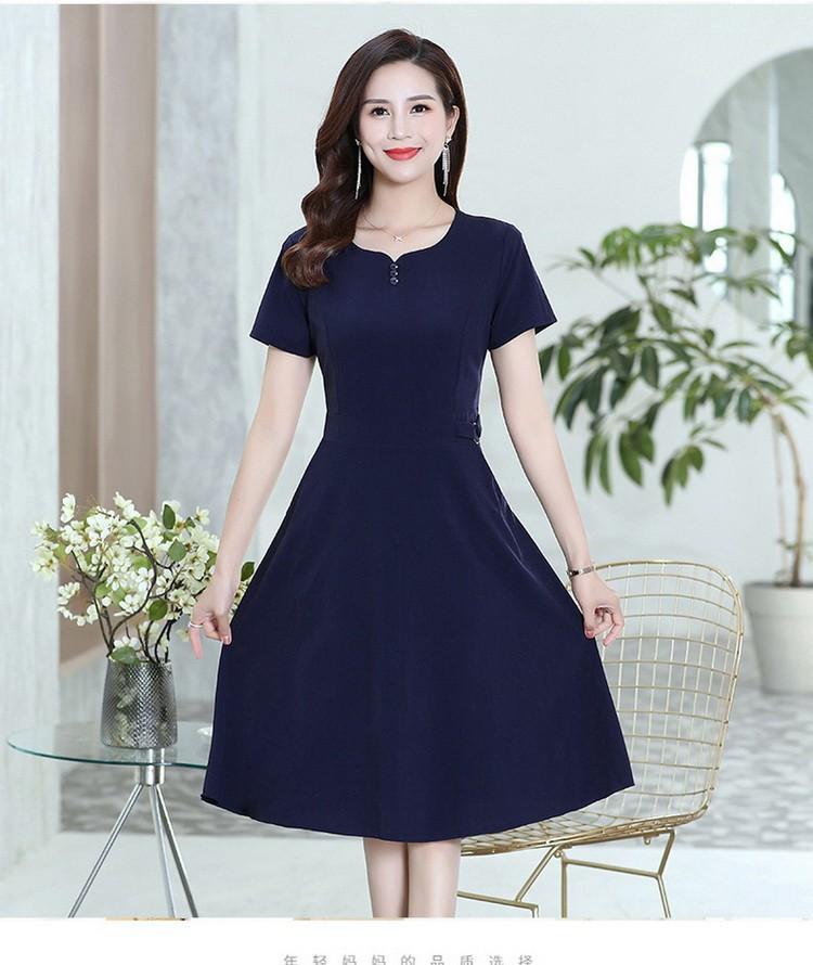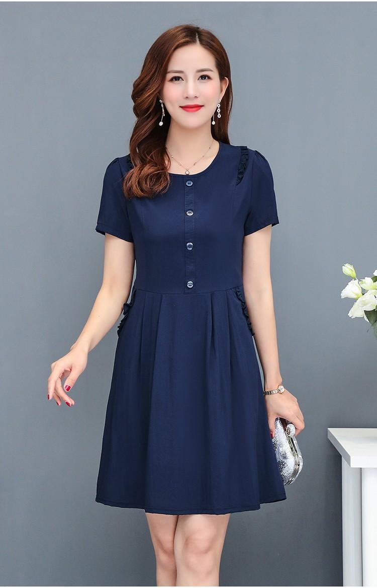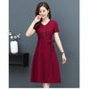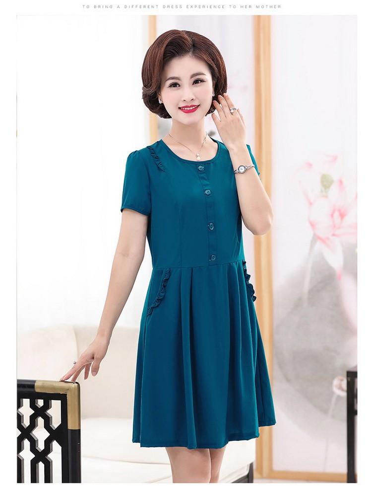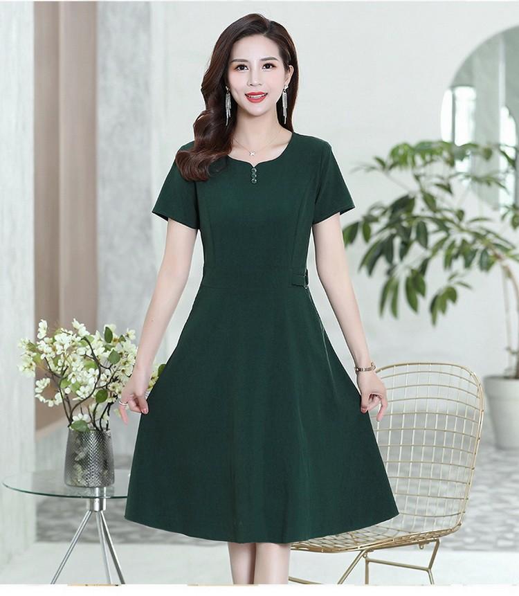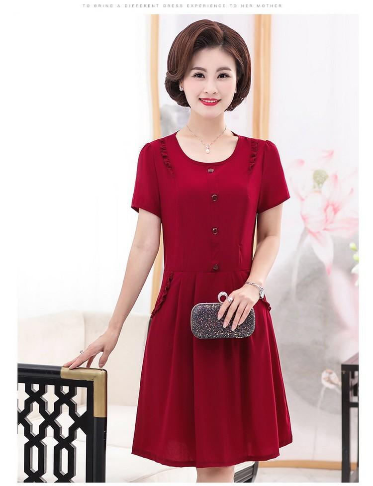 Uma nova geração de cabelo emagrecendo mãe vestido casual verão temperamento algodão manga curta vestido sobre o joelho saia