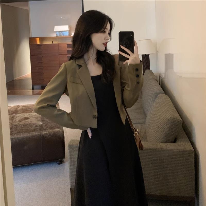2024 Primavera e Verão Novo Estilo Hepburn Estilo Royal Sister Estilo Elegante Terno Jaqueta com Saia Dividida Deslizante Comprimento Médio Feminino