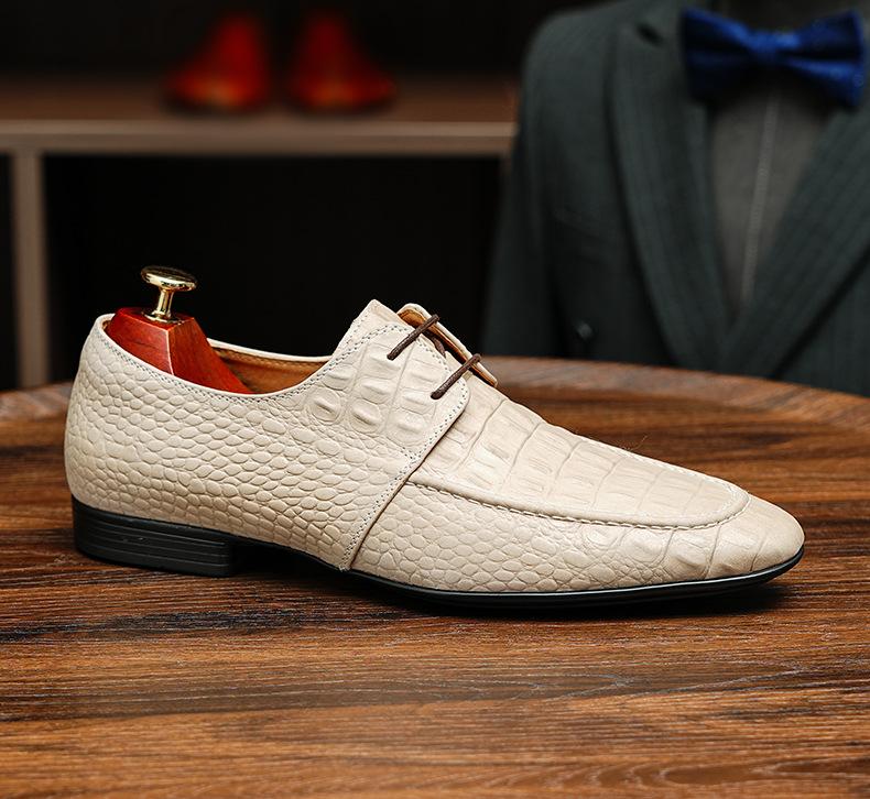 Couro genuíno crocodilo padrão sapatos de couro masculino formal desgaste de negócios estilo britânico fundo macio Derby sapatos respiráveis casuais sapatos masculinos apontados dedo do pé
