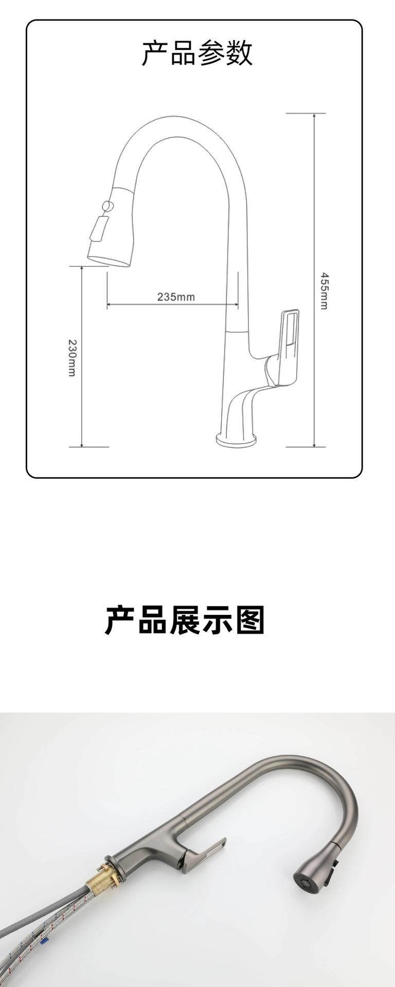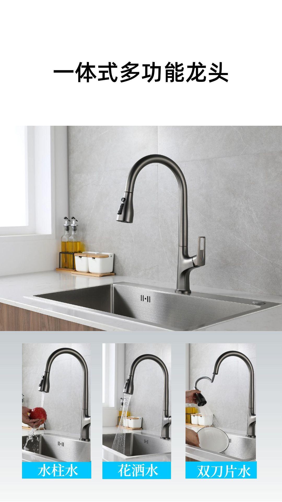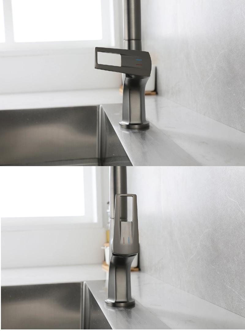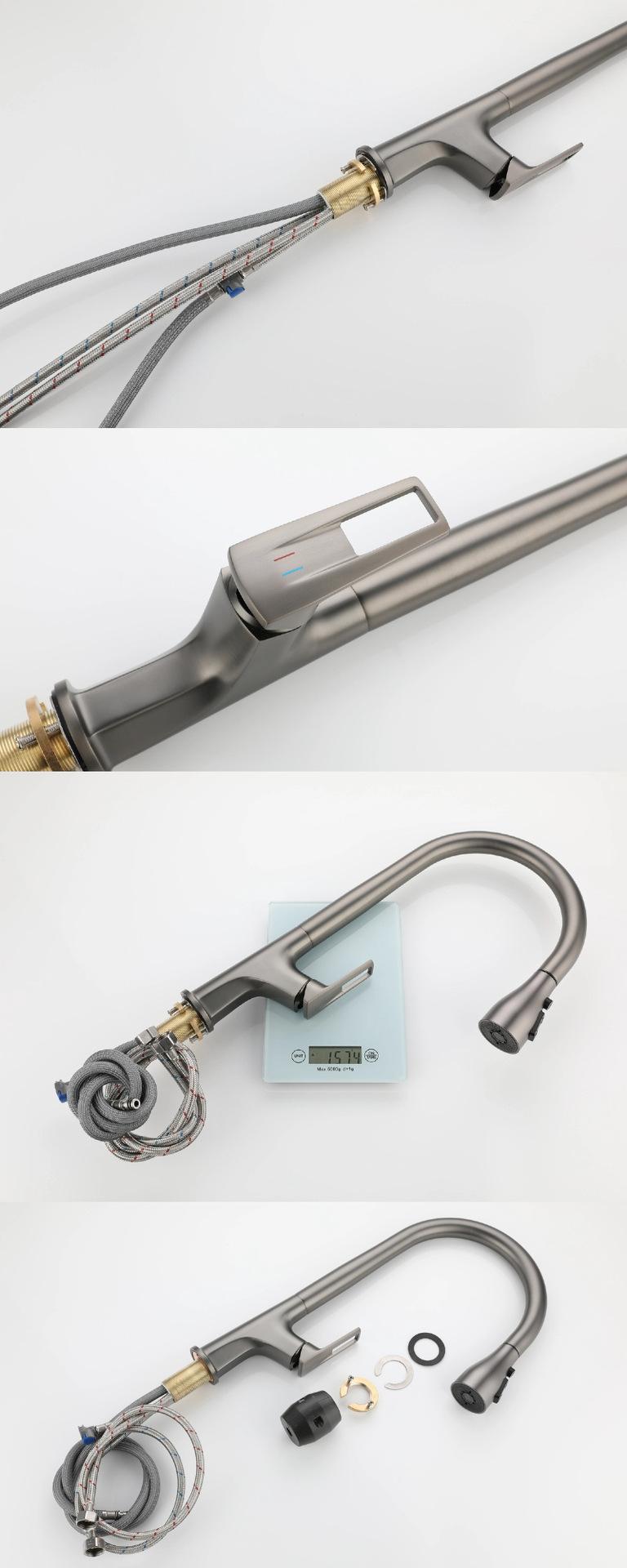 Pistola cinza multimodo tomada de água cozinha doméstica lavatório torneira retrátil pia pia torneira quente e fria