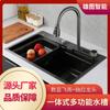 Torneira de Cozinha Multifuncional Shark High-end com Display Digital, Chuveiro de Chuva, Extensível, Aço Inoxidável 304, Nano Cinza Chumbo, Cuba Única Grande
