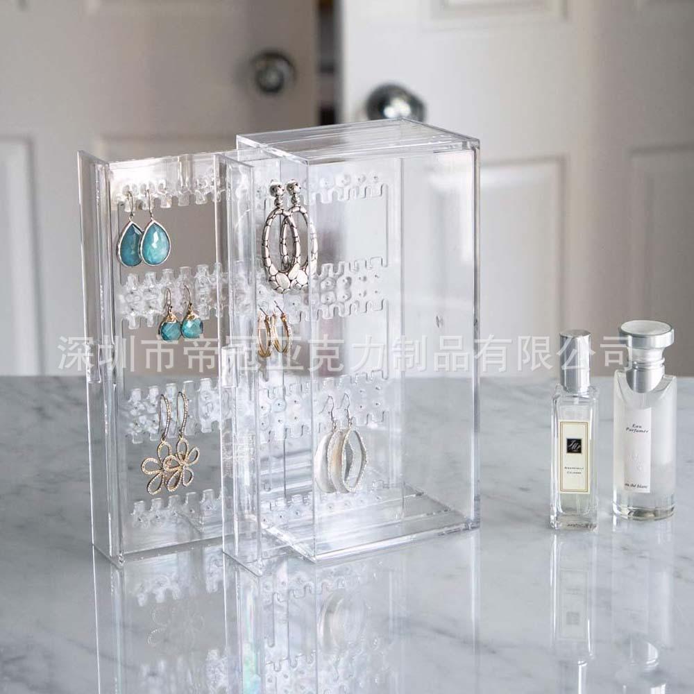 Acrílico transparente à prova de poeira Dressing Table brinco rack joias caixa de armazenamento pendente Pulseira de armazenamento rack de exibição gaveta
