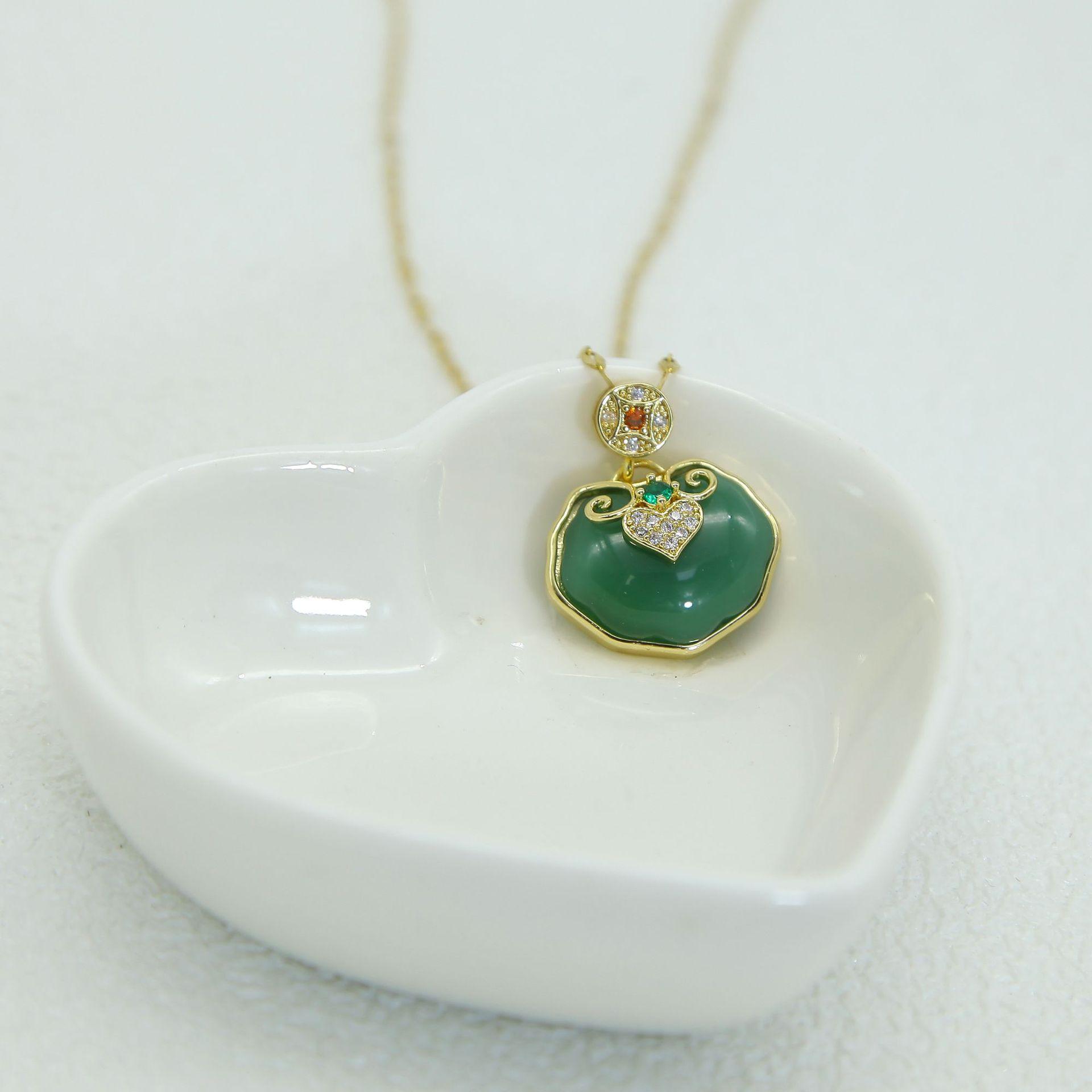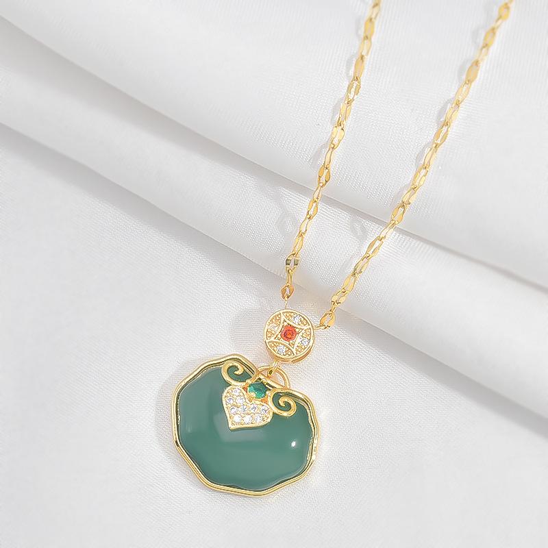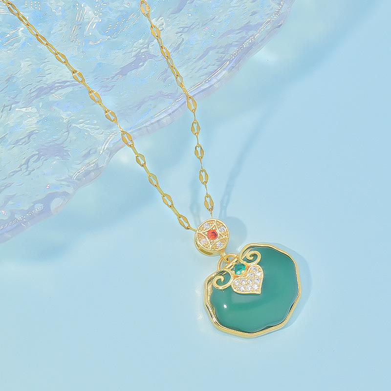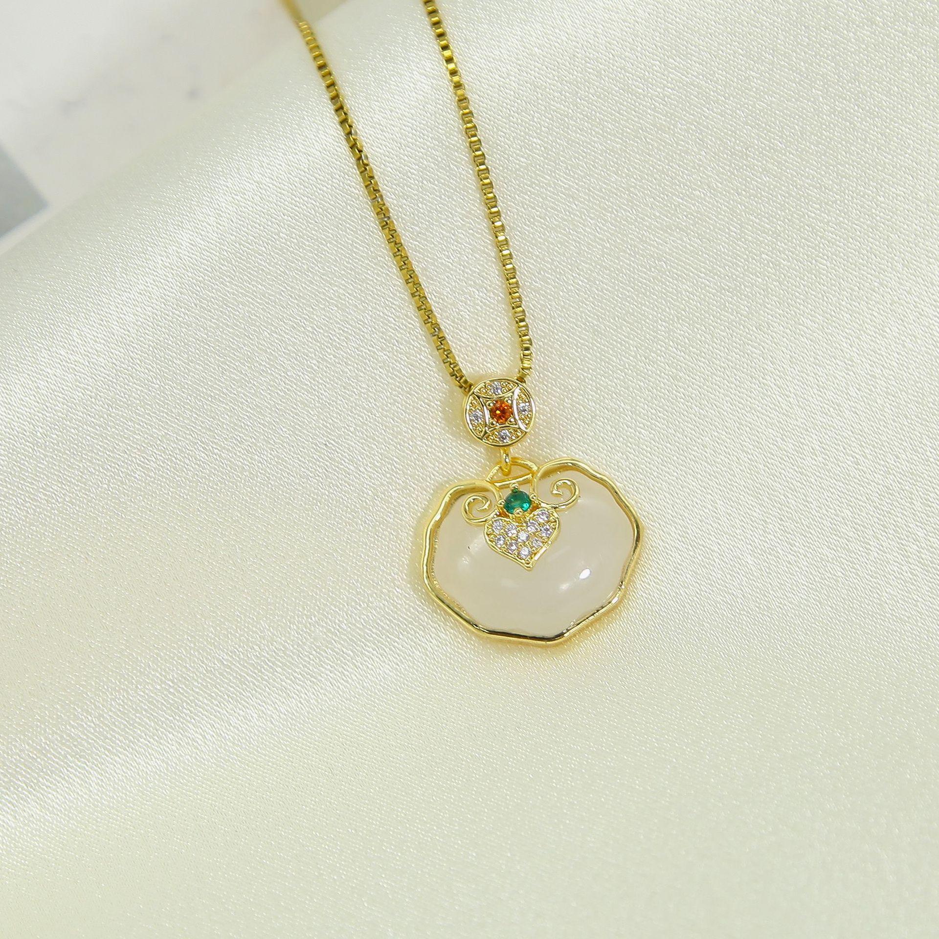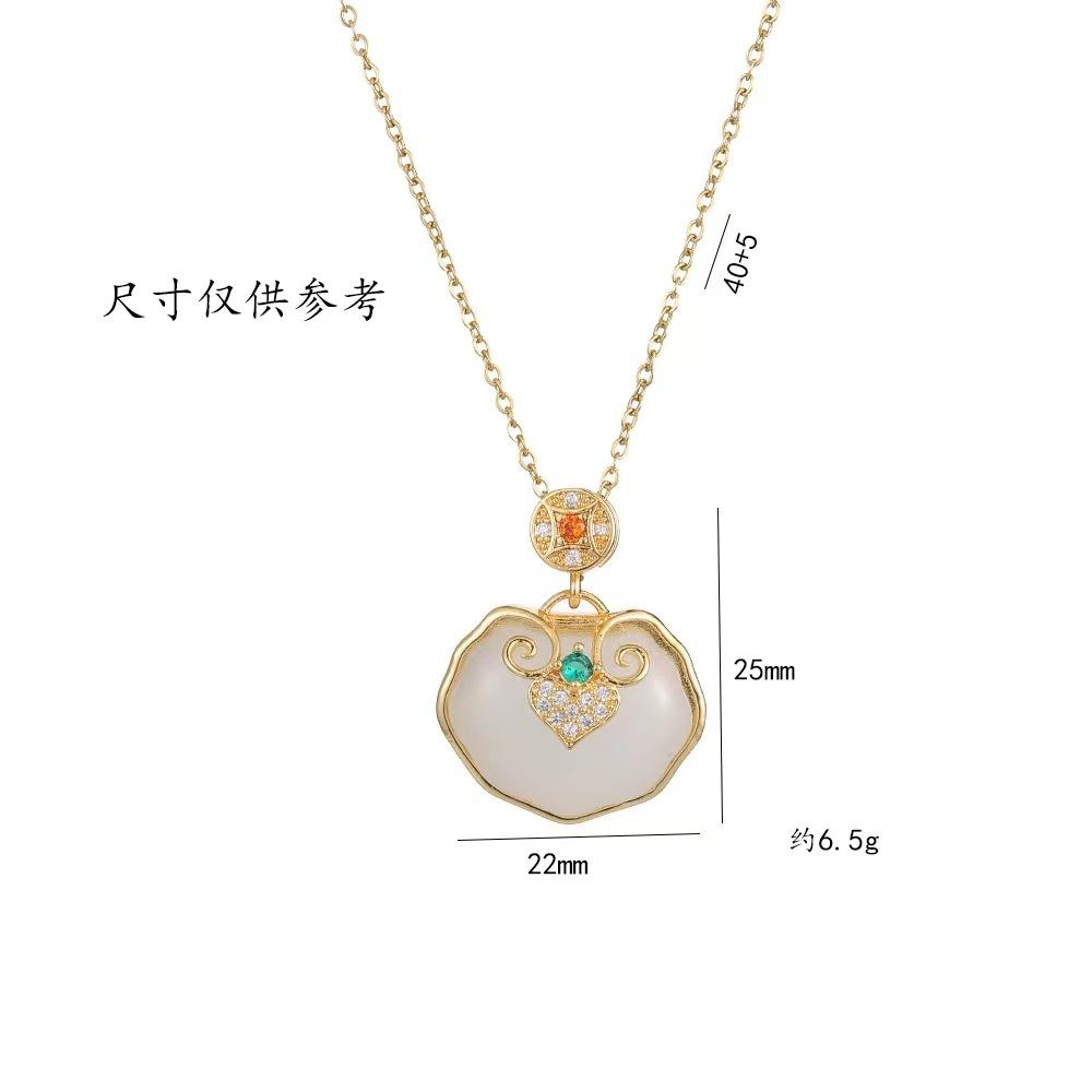 Novo estilo chinês imitação hetian jade xiangyun colar nicho feminino retro nacional maré cobre dinheiro paz bloqueio acessórios auspiciosos não desvanecer