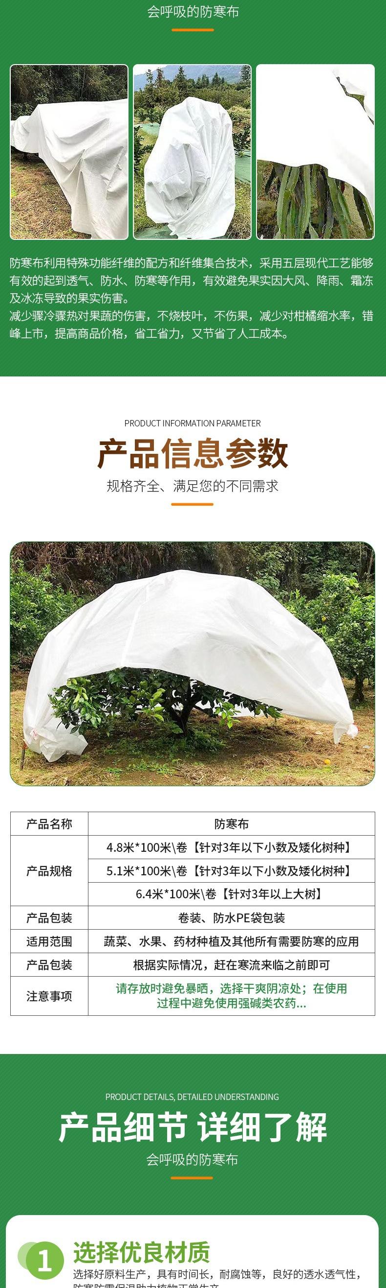 Tecido Cítrico à Prova de Frio Árvore Frutífera Ameixeira Cerejeira Árvore do Chá Rake Mandarina Tecido Anticongelante Wogan Tecido Antigeada à Prova de Frio Tecido Não Tecido