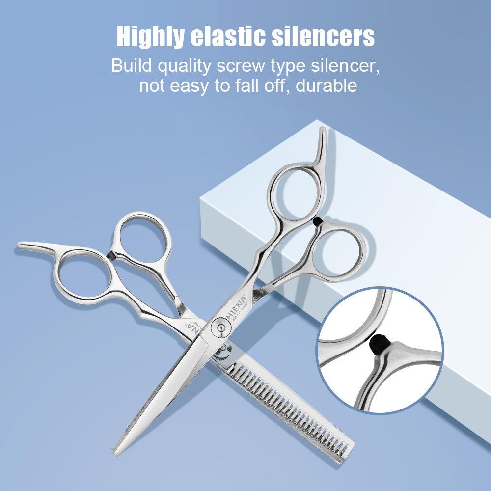 Em estoque plástico grip tesoura Barber tesoura lisa tesoura dente tesoura reparação de cabelo cabeleireiro terno aço inoxidável onda tesoura estilista ferramentas estilista
