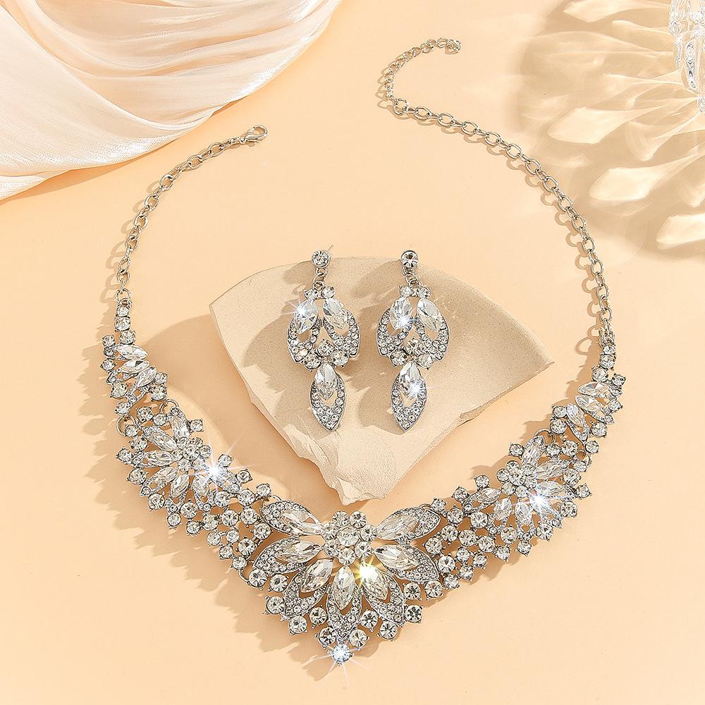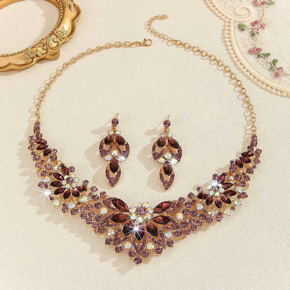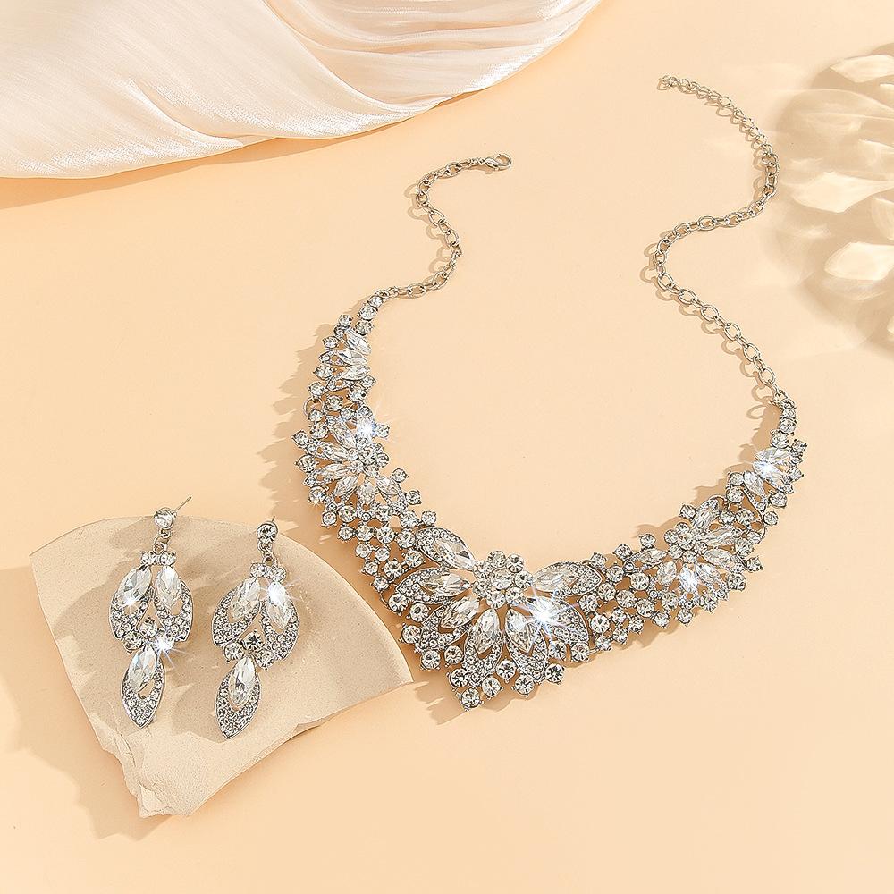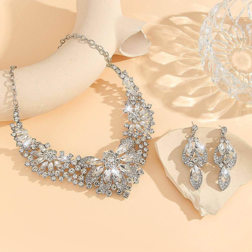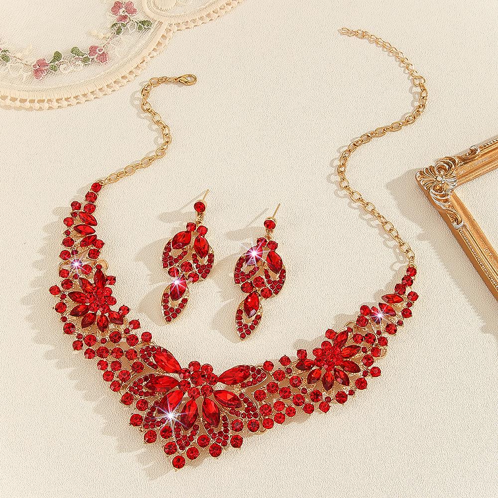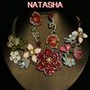 Europeu e americano popular vintage colar terno feminino conjunto de 2 peças folhas flores joias exageradas novos acessórios de casamento para noivas