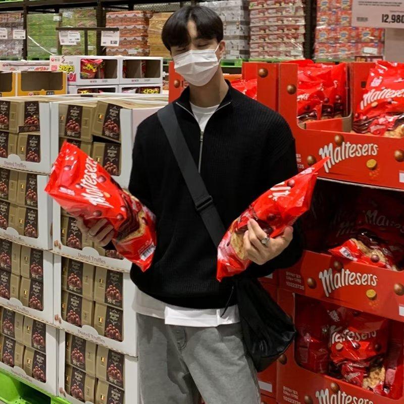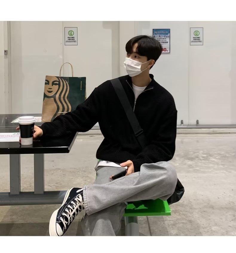 Outono Meio Zíper Cardigan Suéter Masculino Coreano Moda Bonito All-match Gola Vertical Suéter Top Gola Alta Jaqueta